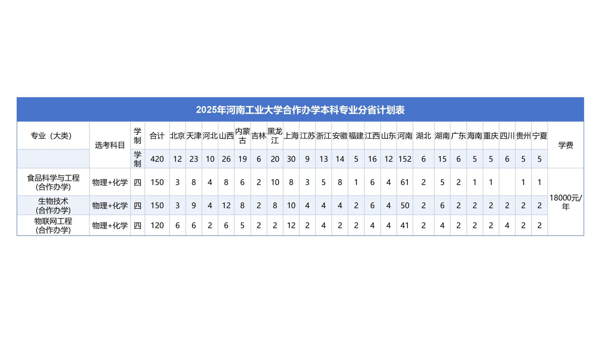 河南工业大学中外合作办学招生计划