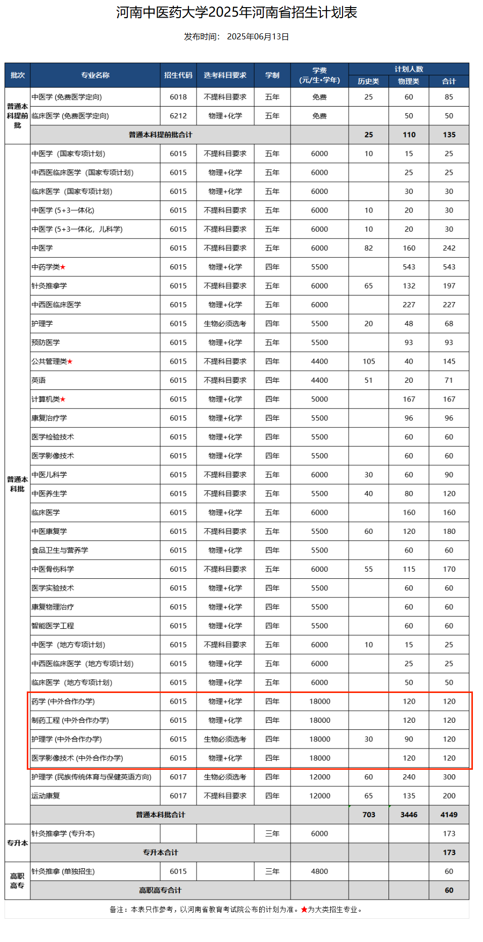 本文为大家整理的是河南中医药大学2025年中外合作办学招生计划,主要包含招生专业、招生人数等信息,希望对大家有所帮助,如有变动或异议,请以各省教育考试院和学校公布的信息为准。