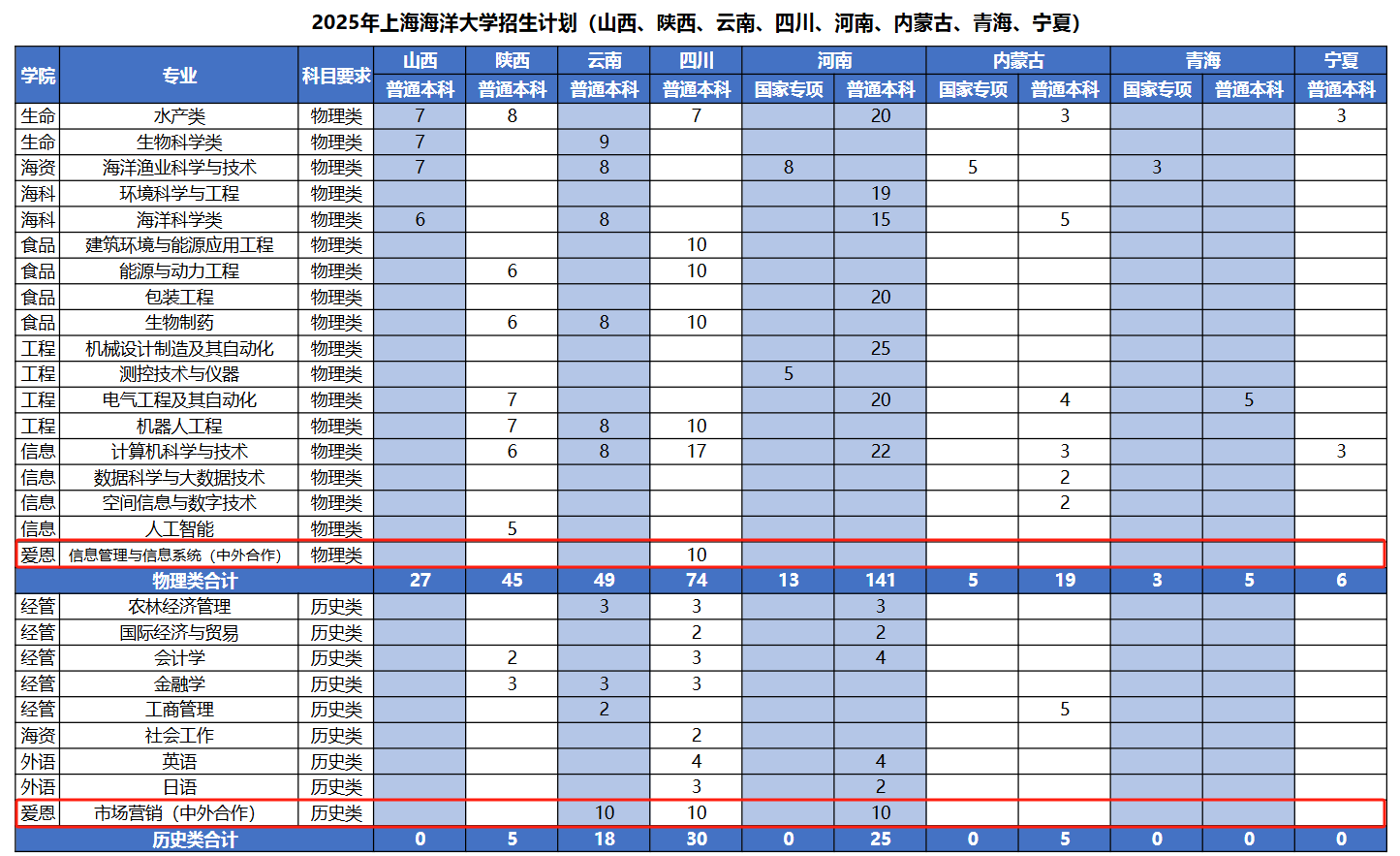 本文为大家整理的是上海海洋大学2025年中外合作办学招生计划,主要包含招生专业、各专业招生人数等信息,希望对大家有所帮助,如有变动或异议,请以各省教育考试院和学校公布的信息为准。