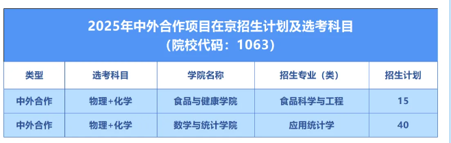 本文为大家整理的是北京工商大学2025年中外合作办学招生计划,主要包含招生专业、各专业招生人数等信息,希望对大家有所帮助,如有变动或异议,请以各省教育考试院和学校公布的信息为准。
