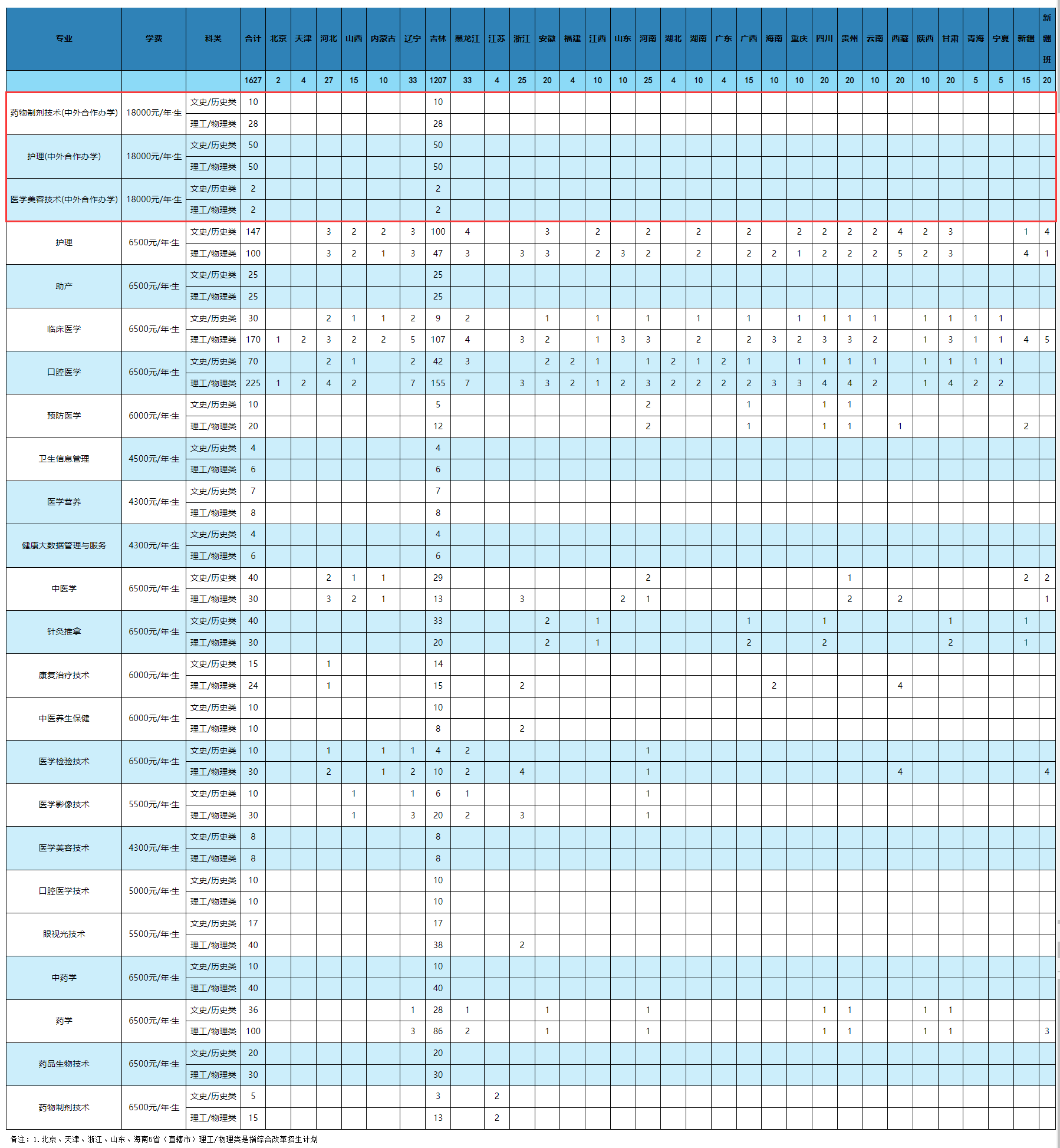 长春医学高等专科学校中外合作办学招生计划