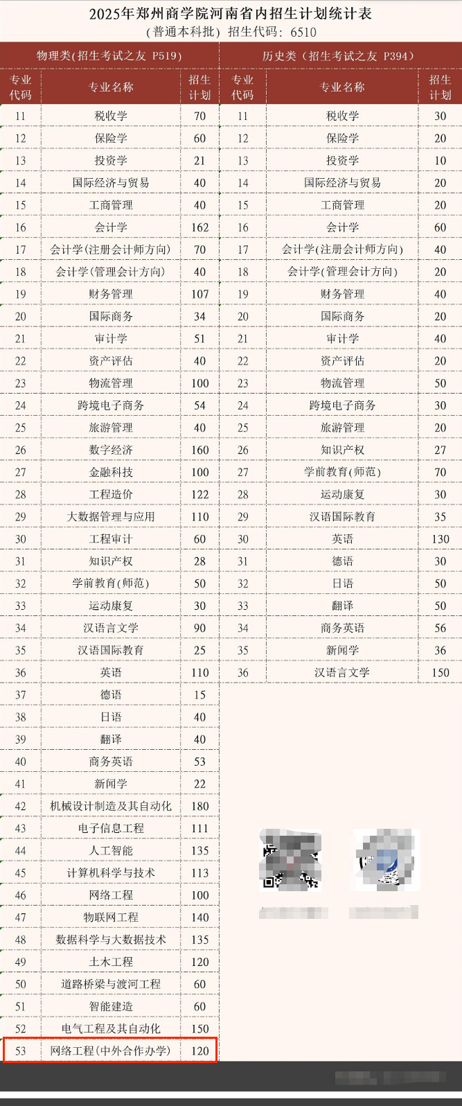 2025郑州商学院中外合作办学招生计划及各专业招生人数