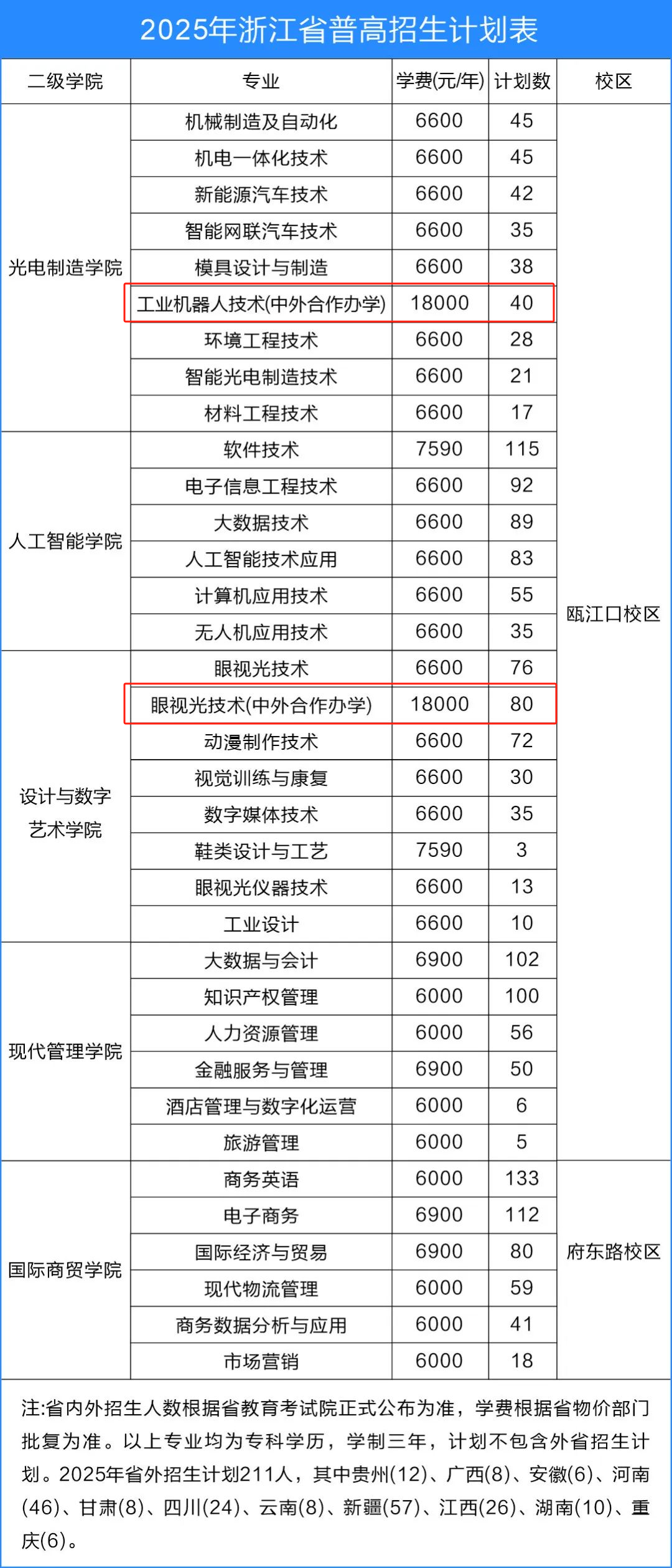 本文为大家整理的是浙江工贸职业技术学院2025年中外合作办学招生计划,主要包含招生专业、各专业招生人数等信息,希望对大家有所帮助,如有变动或异议,请以各省教育考试院和学校公布的信息为准。
