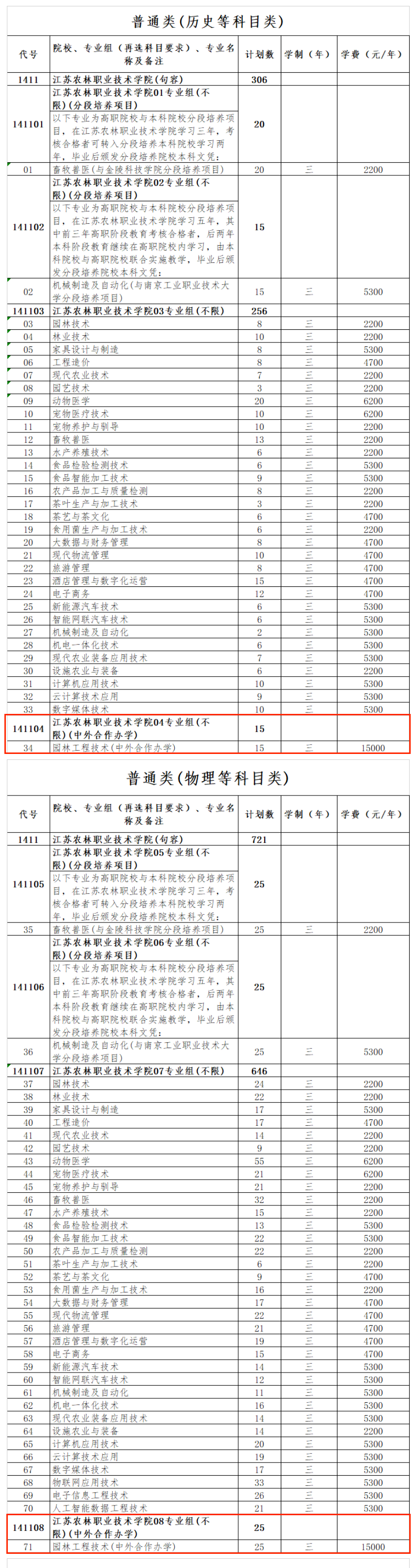 2025江苏农林职业技术学院中外合作办学招生计划及各专业招生人数
