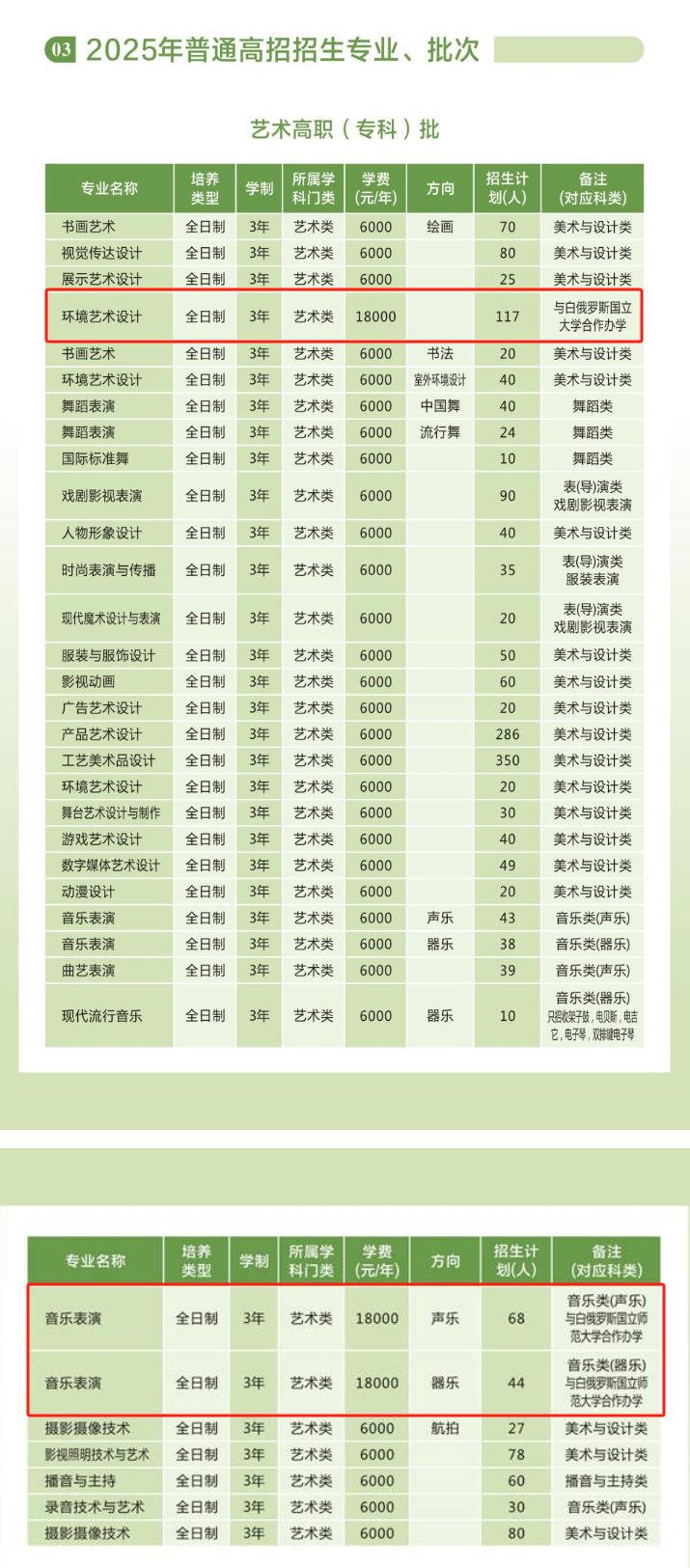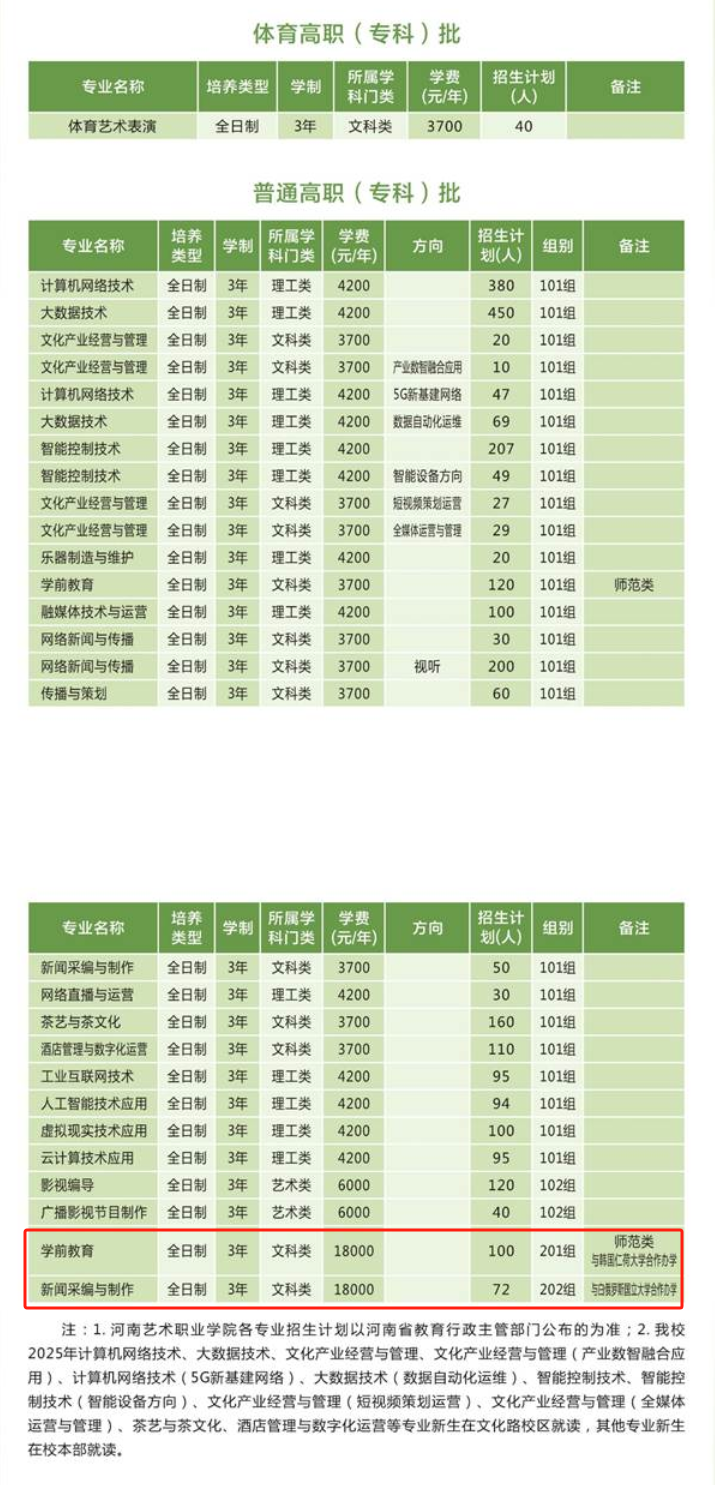 2025河南艺术职业学院中外合作办学招生计划及各专业招生人数