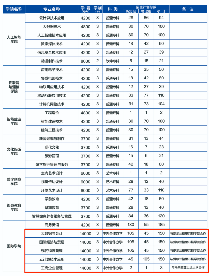 2025河南经贸职业学院中外合作办学招生计划及各专业招生人数
