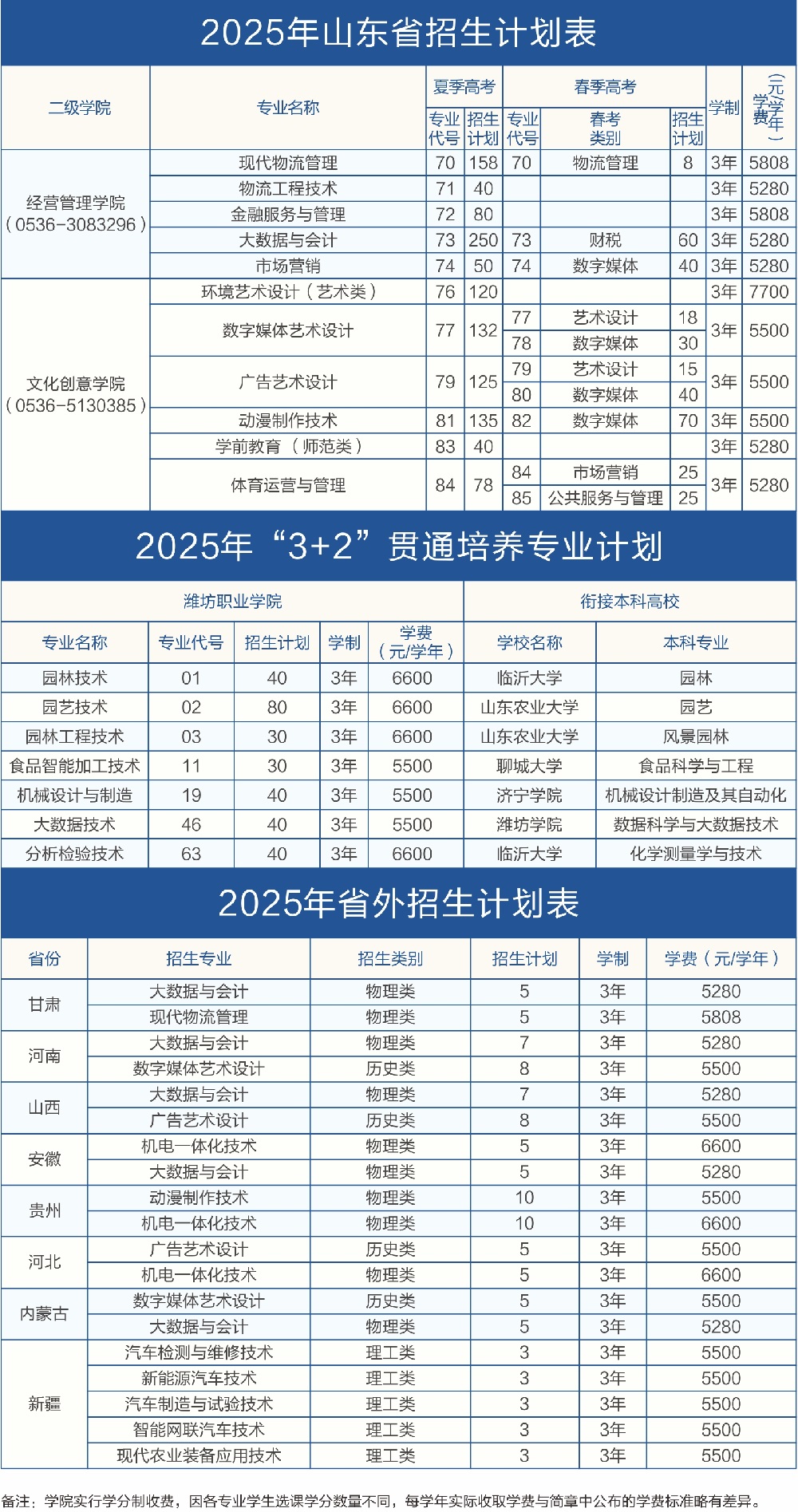 2025潍坊职业学院中外合作办学招生计划 各专业收费标准