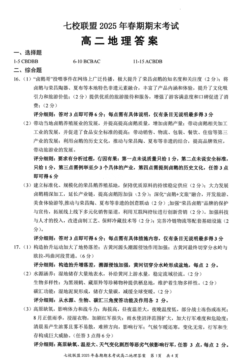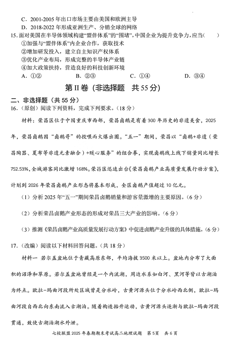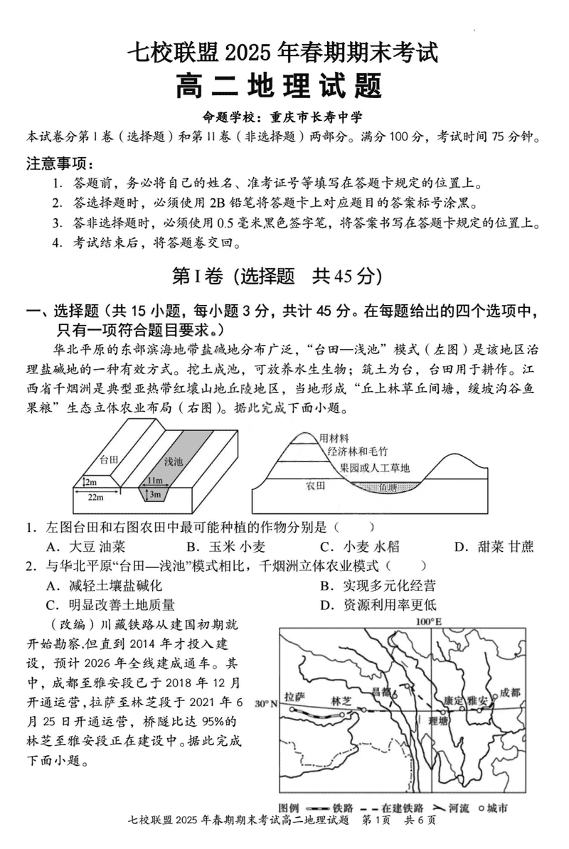 重庆市七校联盟2025年春期高二期末地理试题及答案 时间:2025-07-08 重庆 高中地理 重庆市七校联盟2025年春期高二年级期末考地理考试已于近日开考,为方便考生考后及时查看考试情况,查漏补缺、弥补不足,本文整理了试题答案解析相关信息! 地理试题及答案解析