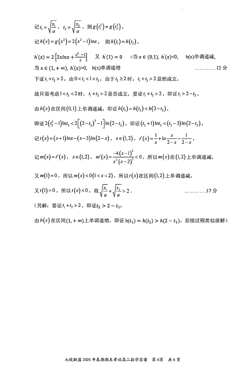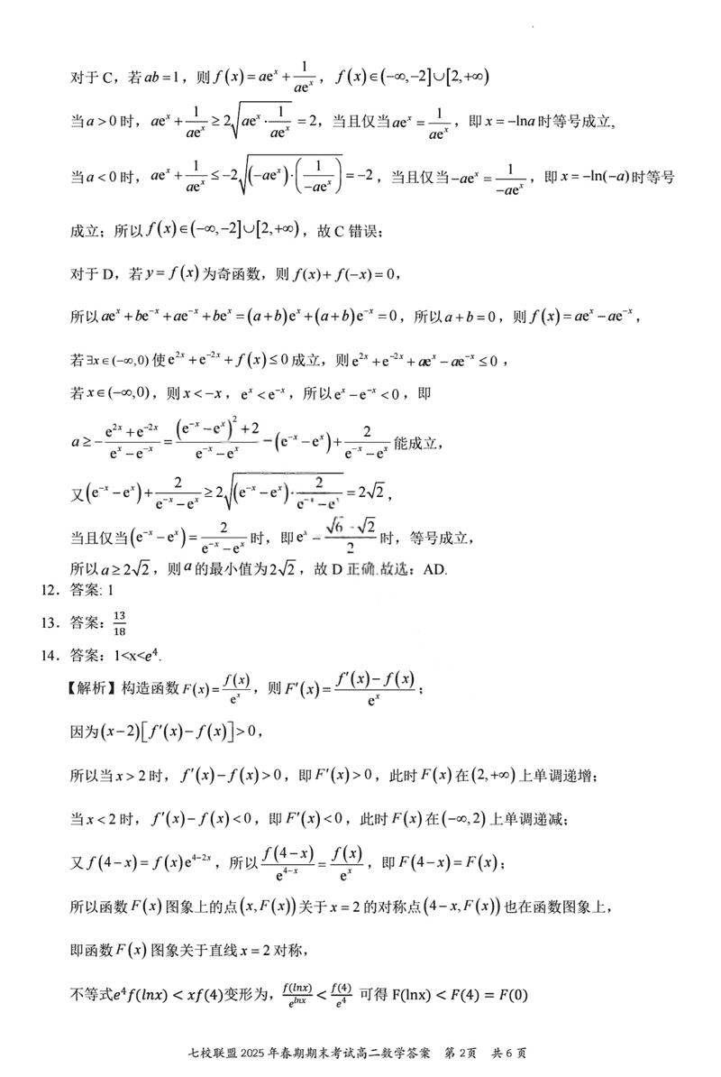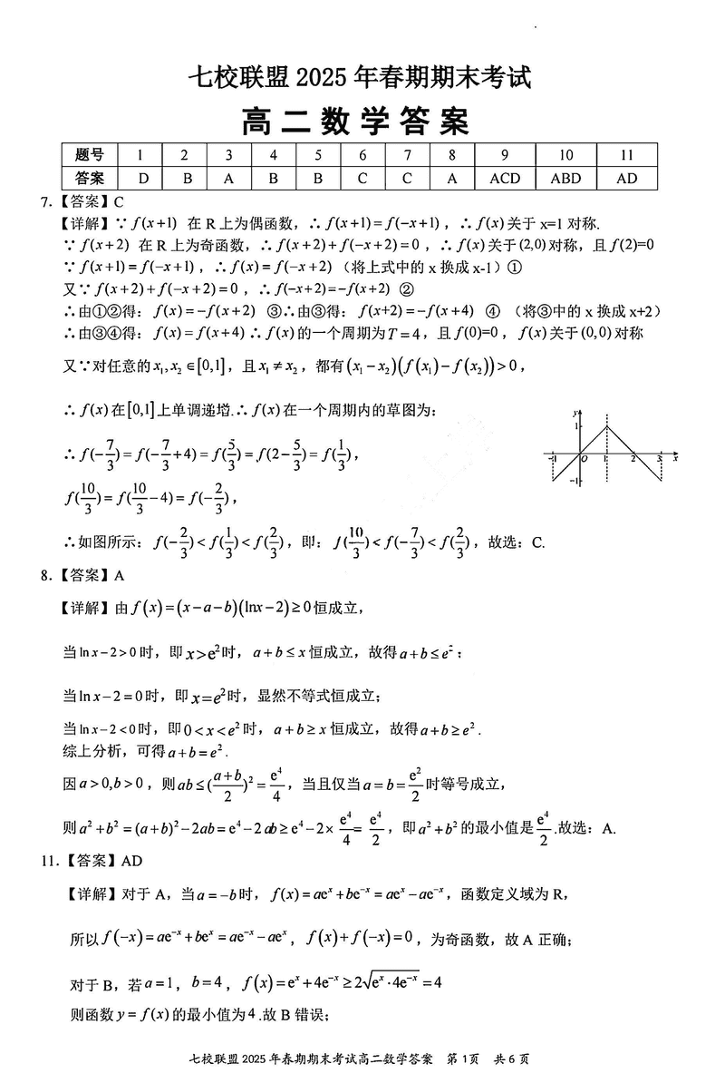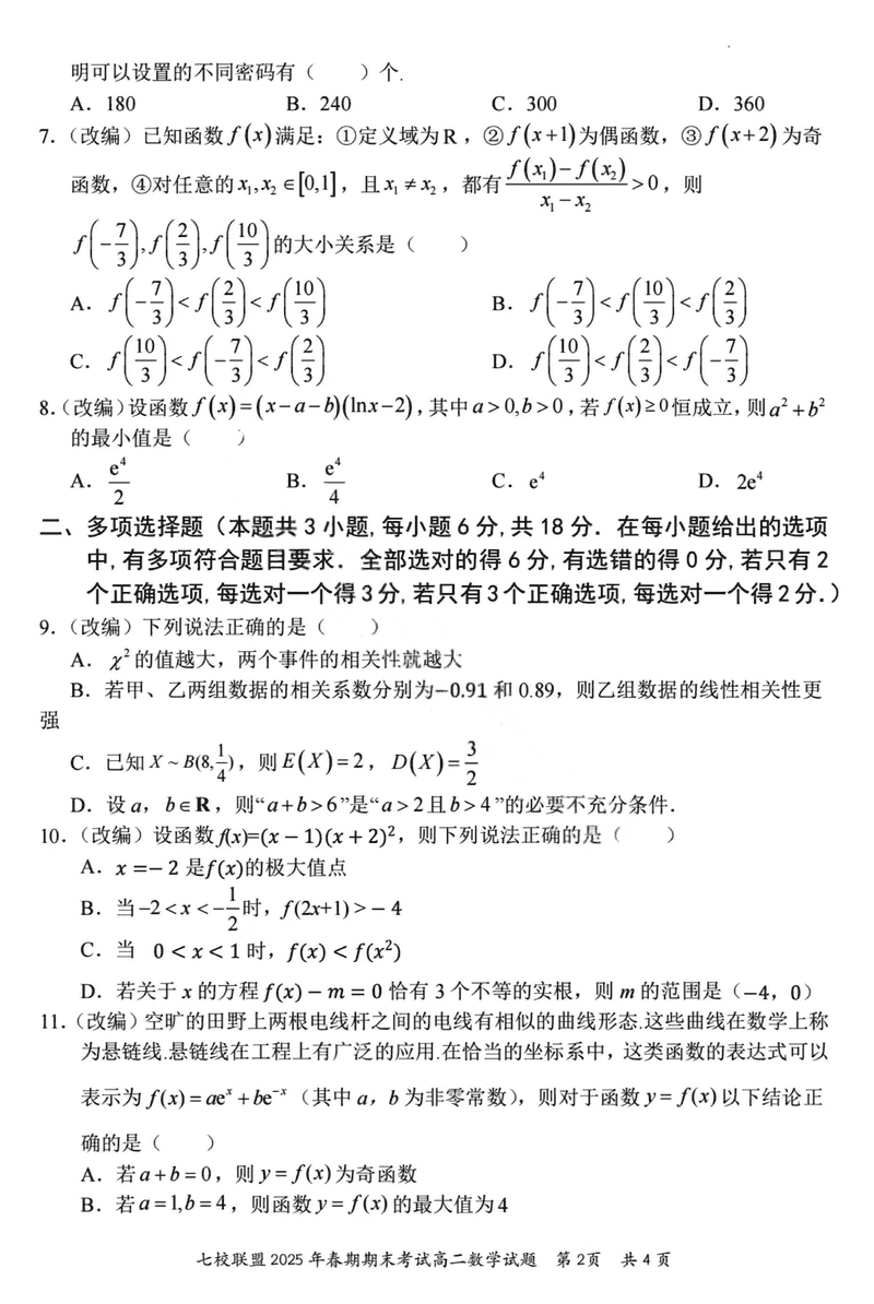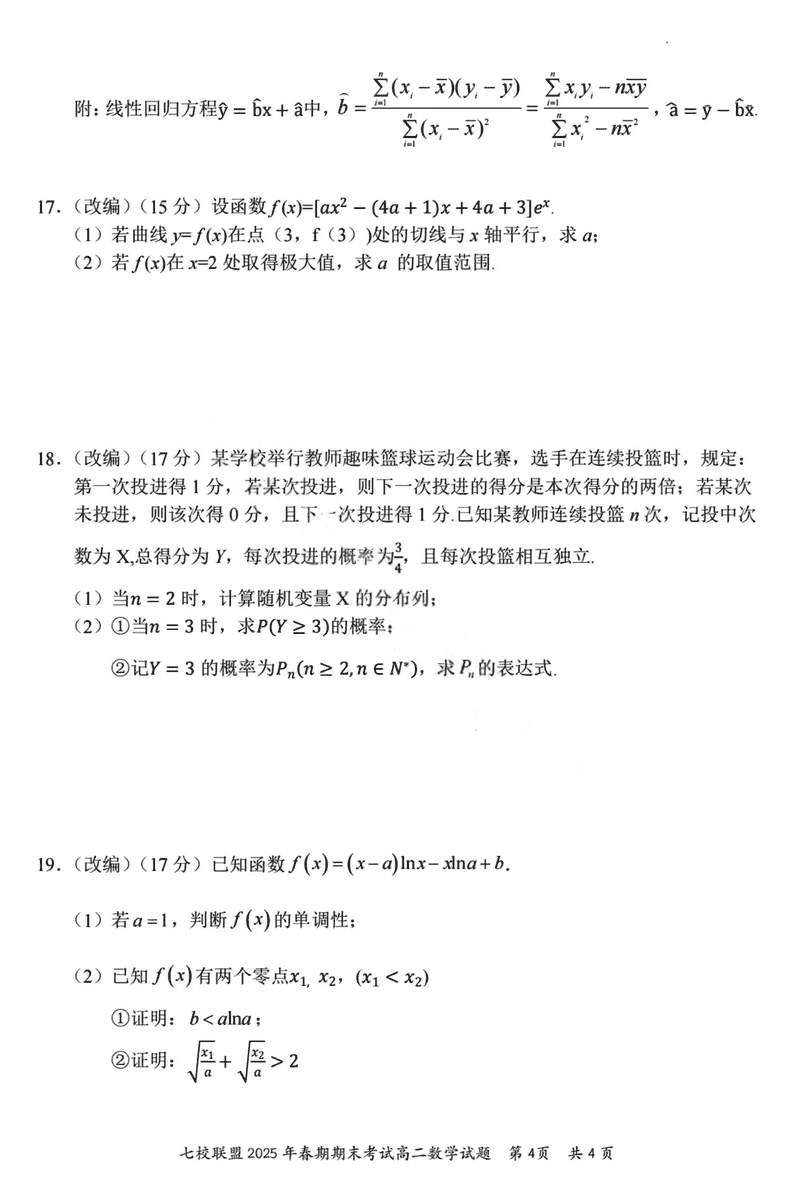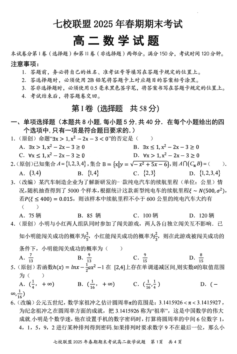 重庆市七校联盟2025年春期高二期末数学试题及答案 时间:2025-07-08 重庆 高中数学 重庆市七校联盟2025年春期高二年级期末考数学考试已于近日开考,为方便考生考后及时查看考试情况,查漏补缺、弥补不足,本文整理了试题答案解析相关信息! 数学试题及答案解析