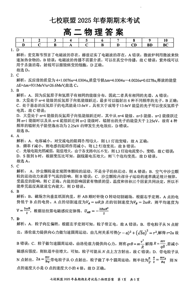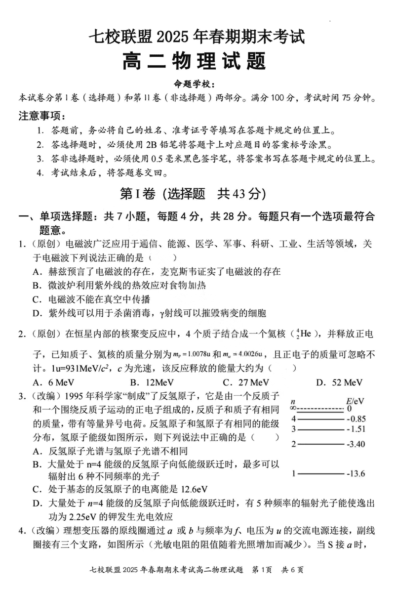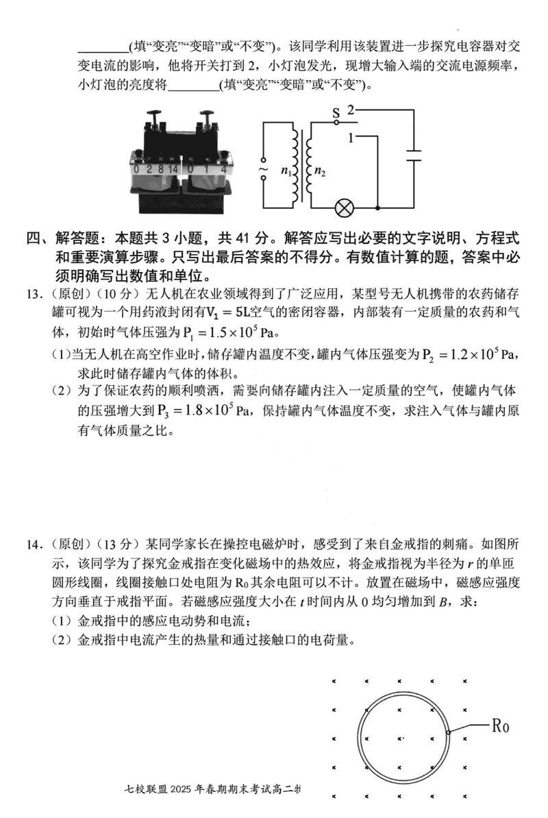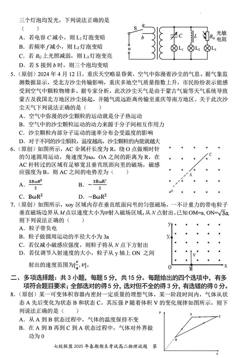 重庆市七校联盟2025年春期高二期末物理试题及答案 时间:2025-07-08 重庆 高中物理 重庆市七校联盟2025年春期高二年级期末考物理考试已于近日开考,为方便考生考后及时查看考试情况,查漏补缺、弥补不足,本文整理了试题答案解析相关信息! 物理试题及答案解析