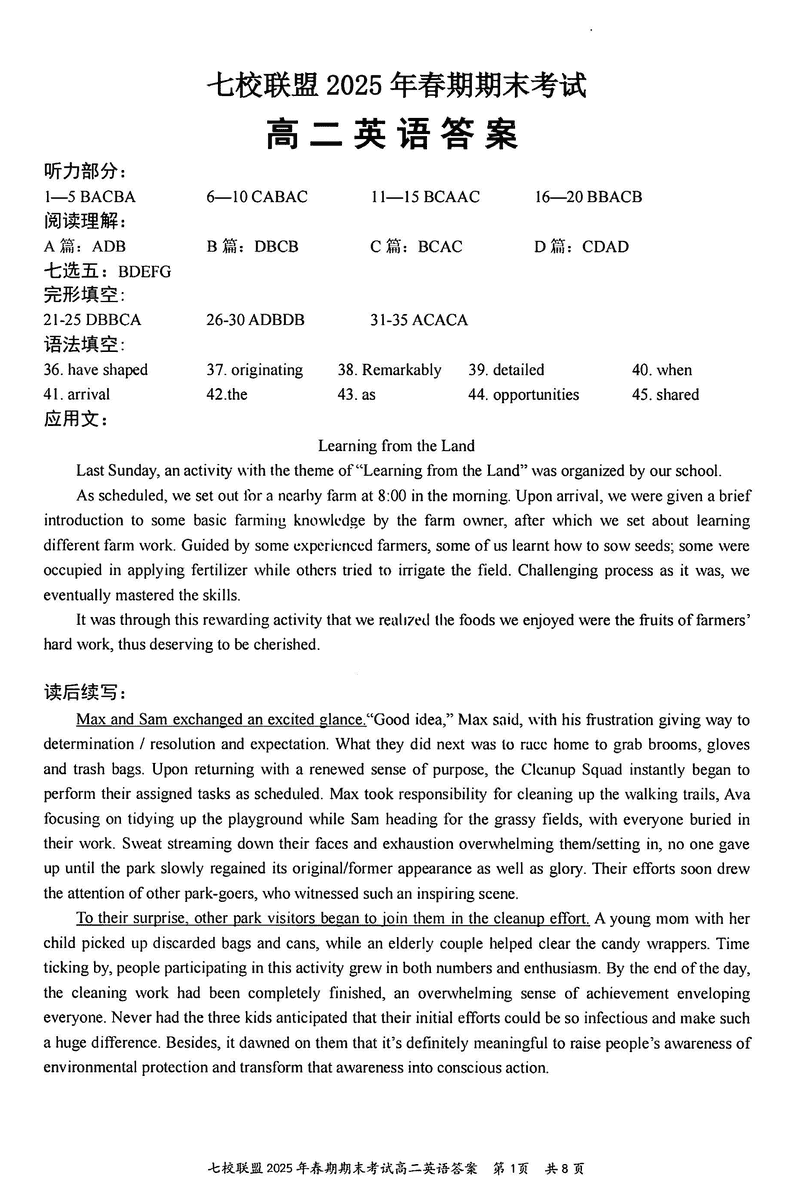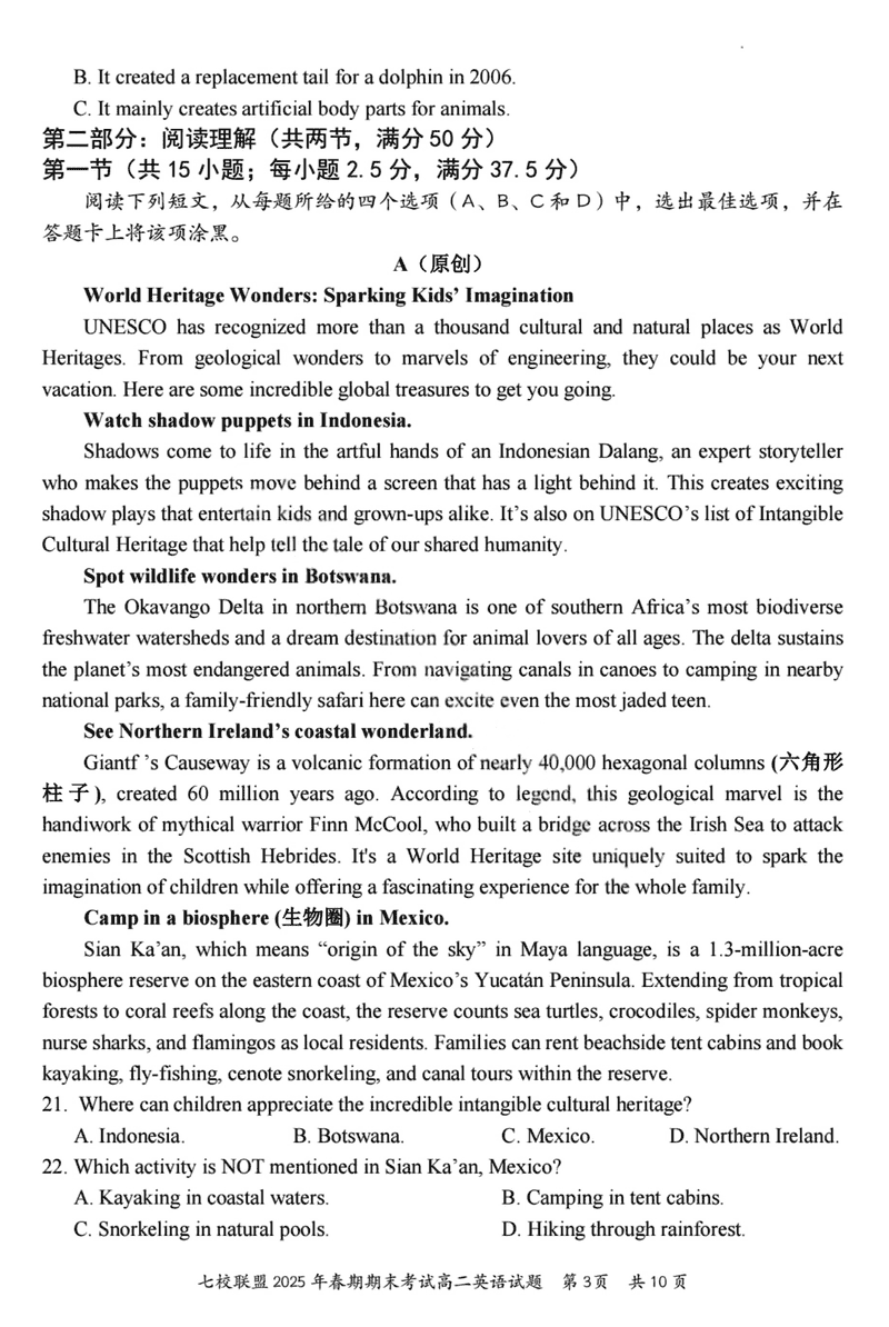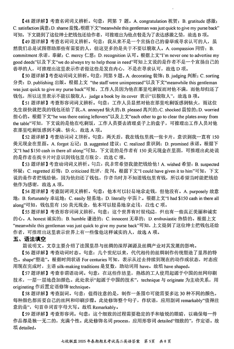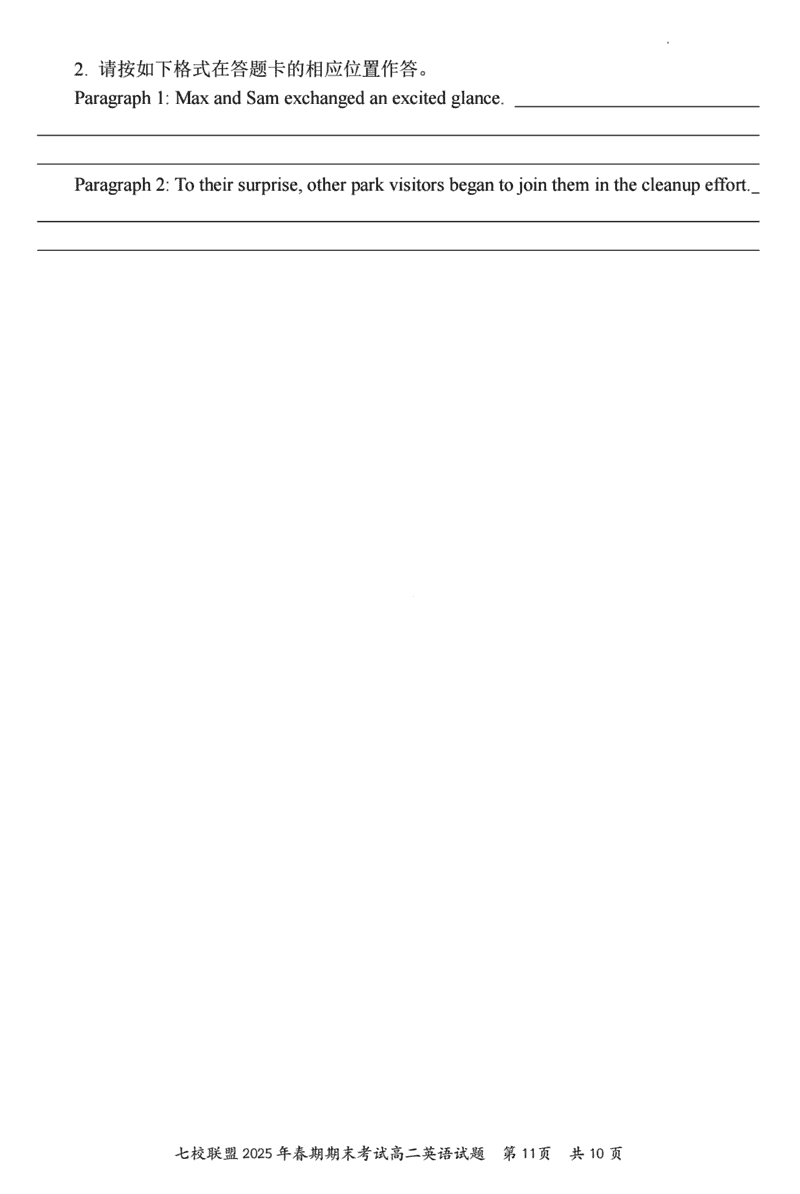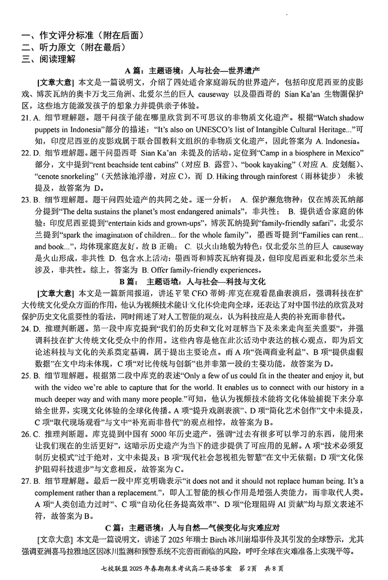 重庆市七校联盟2025年春期高二期末英语试题及答案 时间:2025-07-08 重庆 高中英语 重庆市七校联盟2025年春期高二年级期末考英语考试已于近日开考,为方便考生考后及时查看考试情况,查漏补缺、弥补不足,本文整理了试题答案解析相关信息! 英语试题及答案解析