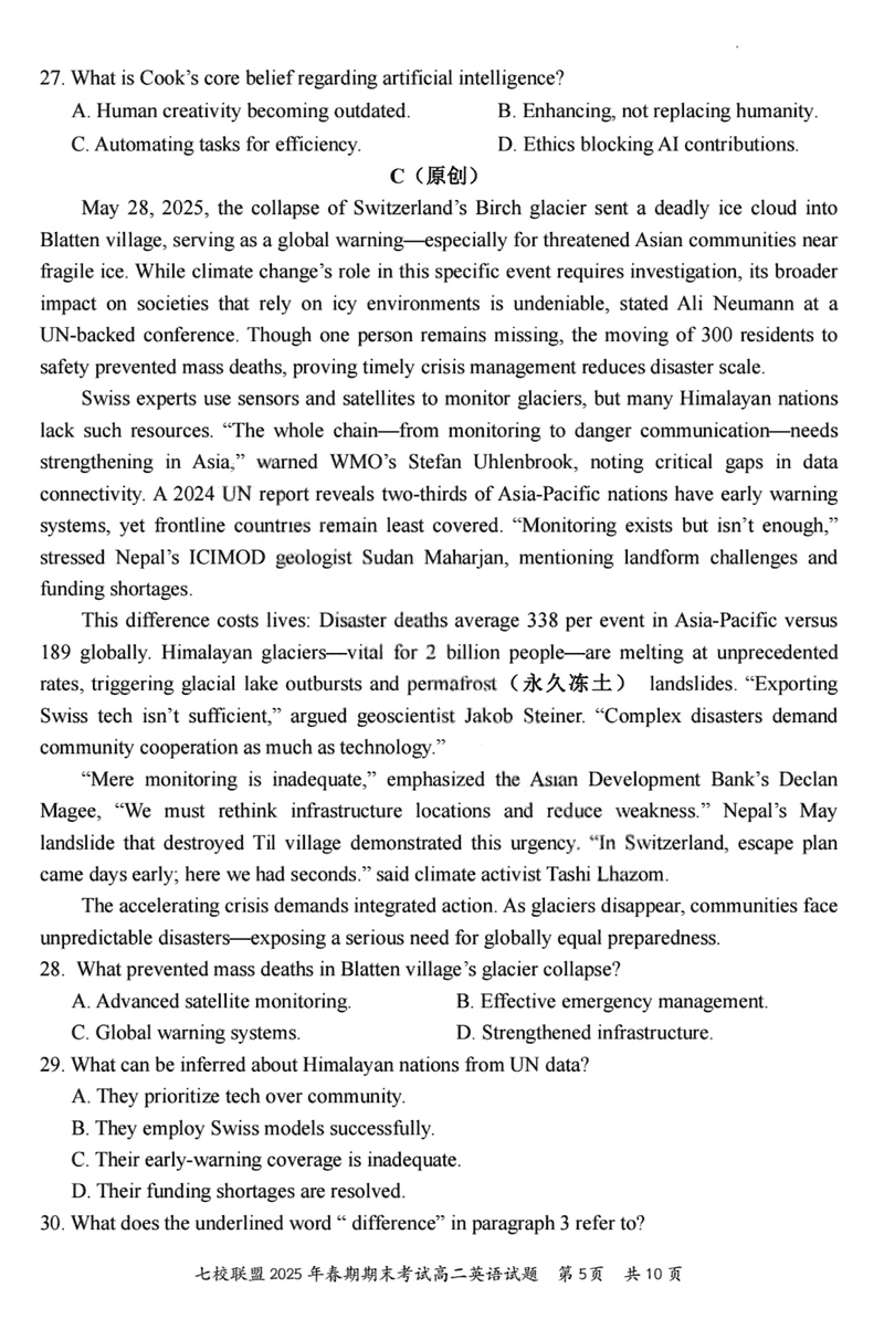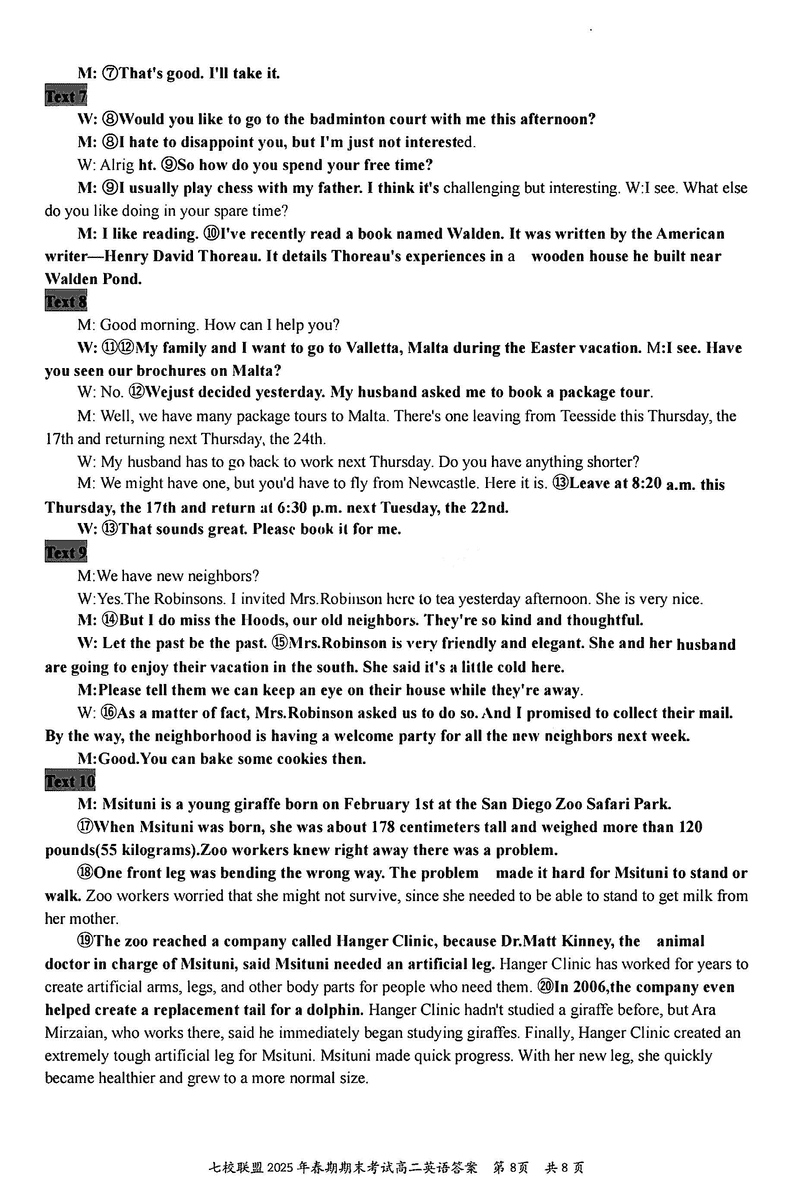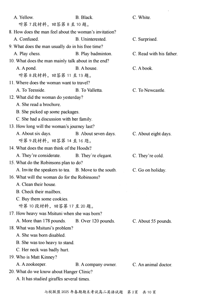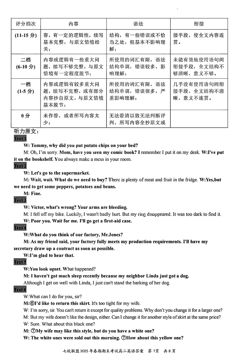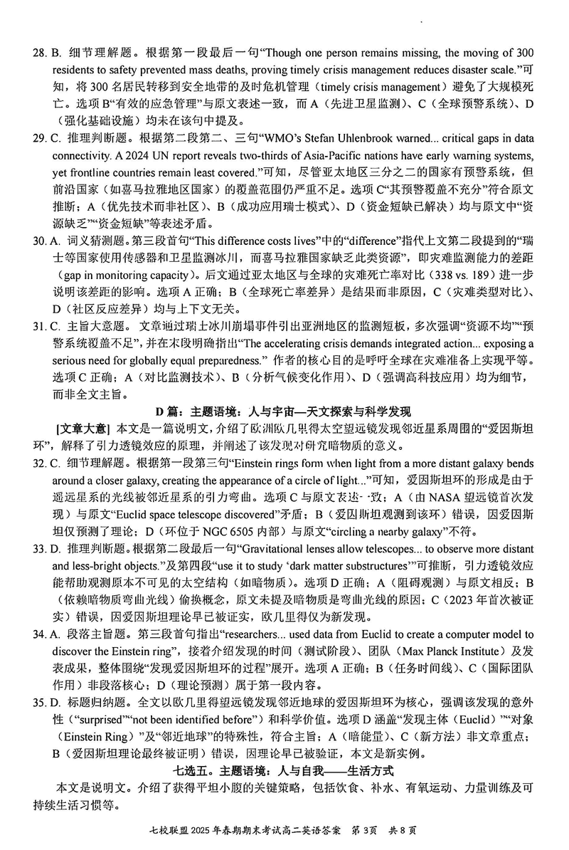 重庆市七校联盟2025年春期高二期末英语试题及答案 时间:2025-07-08 重庆 高中英语 重庆市七校联盟2025年春期高二年级期末考英语考试已于近日开考,为方便考生考后及时查看考试情况,查漏补缺、弥补不足,本文整理了试题答案解析相关信息! 英语试题及答案解析