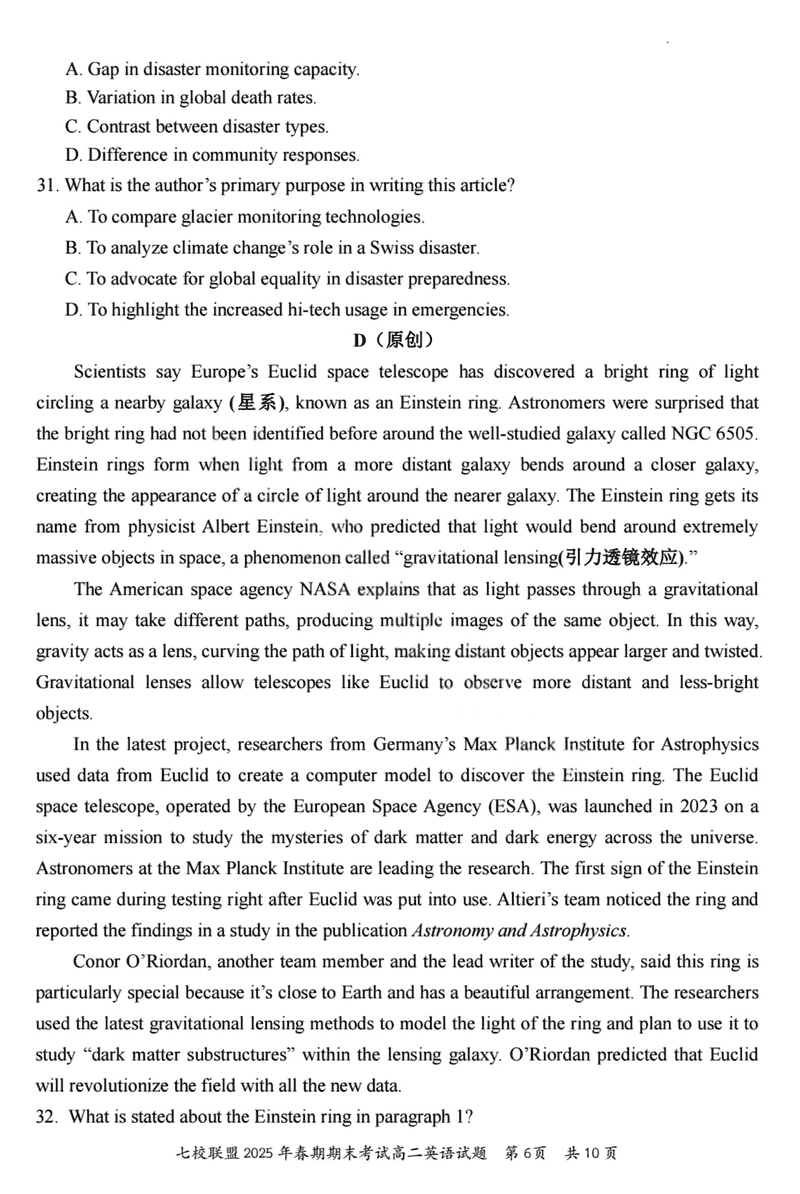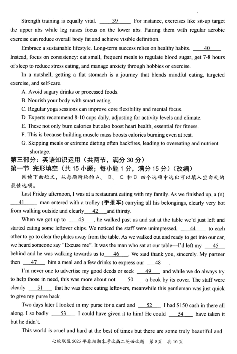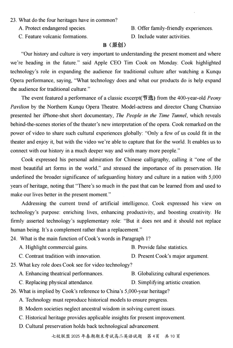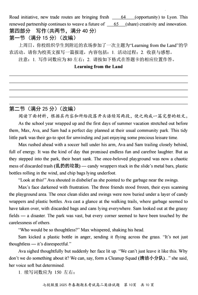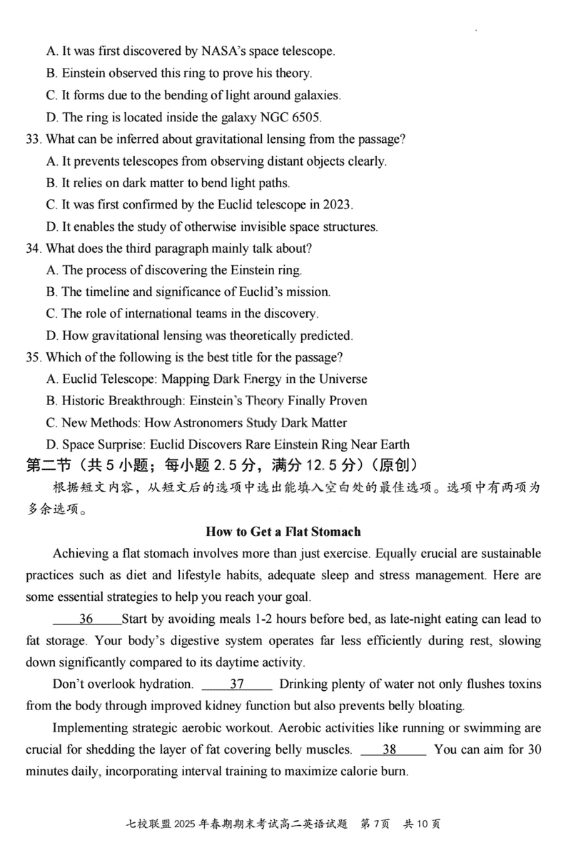 重庆市七校联盟2025年春期高二期末英语试题及答案 时间:2025-07-08 重庆 高中英语 重庆市七校联盟2025年春期高二年级期末考英语考试已于近日开考,为方便考生考后及时查看考试情况,查漏补缺、弥补不足,本文整理了试题答案解析相关信息! 英语试题及答案解析