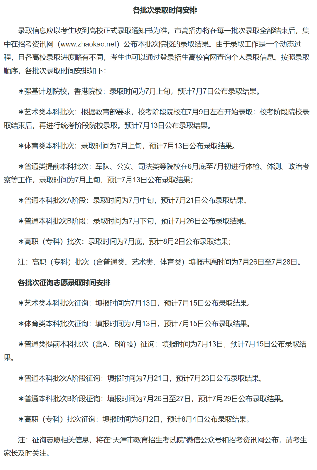 天津2025高考录取工作时间安排 各批次征询志愿录取时间安排