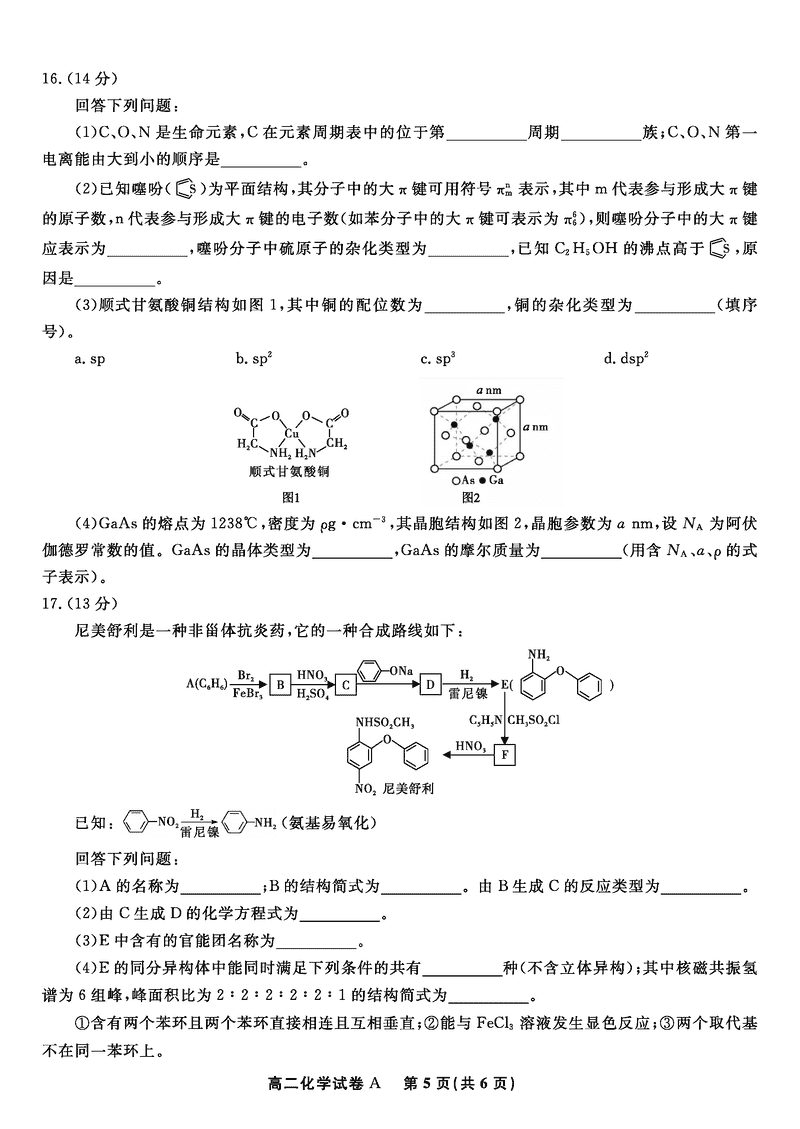 安徽省皖江名校联盟2025年7月高二期末联考化学试题及答案 时间:2025-07-08 安徽 高中化学 安徽省皖江名校联盟2025年7月高二期末联考化学考试已于近日开考,为方便考生考后及时查看考试情况,查漏补缺、弥补不足,本文整理了试题答案解析相关信息! 化学试题及答案解析