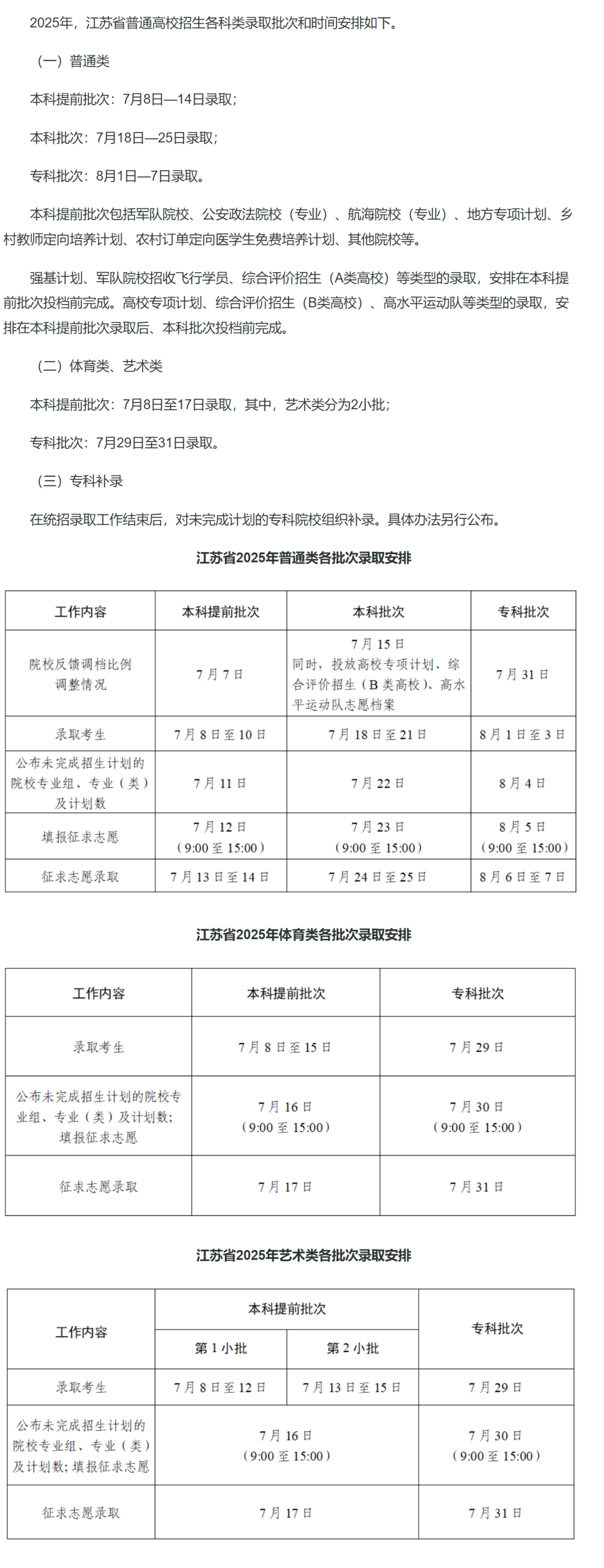 江苏:2025年部分院校面试、体检、体能测评、心理检测等安排表