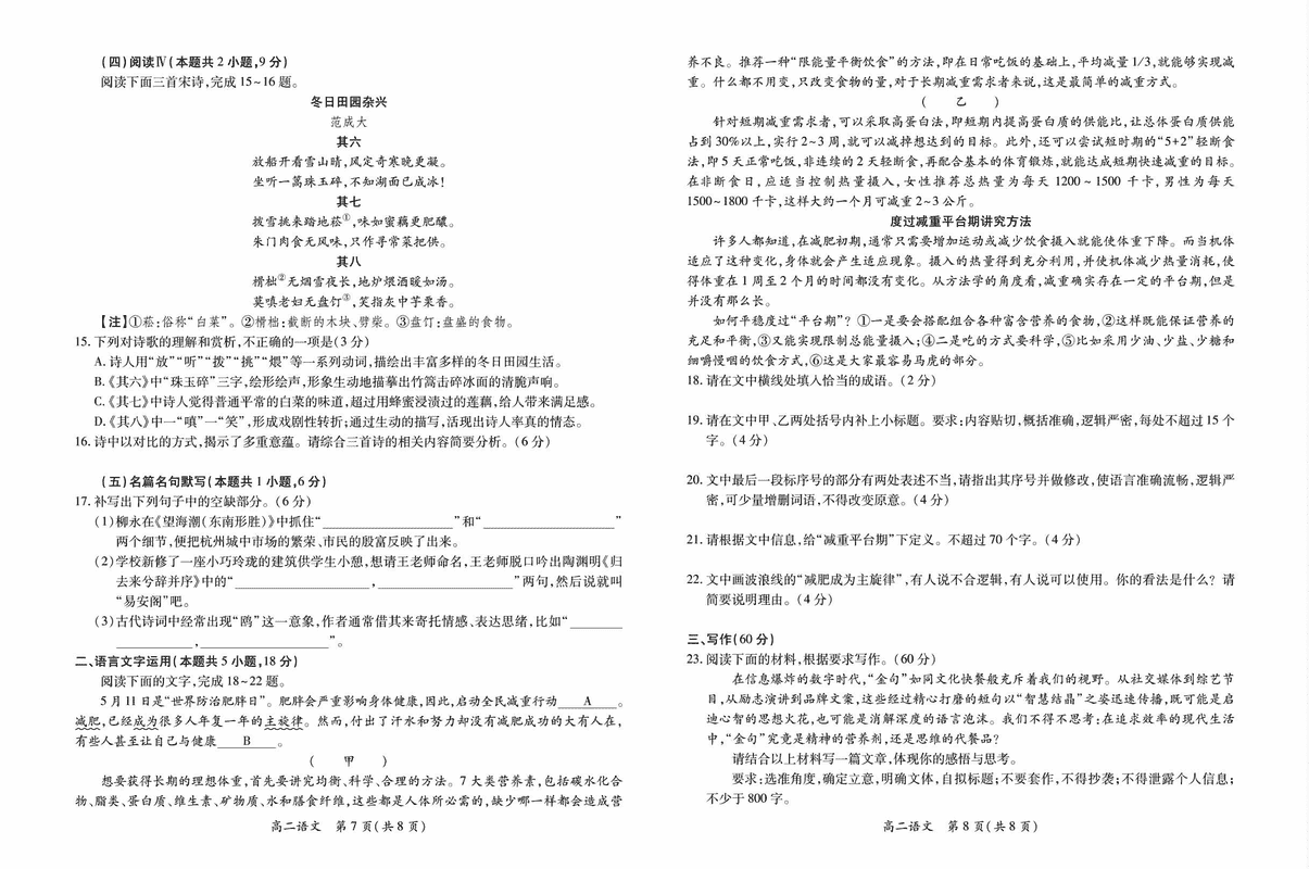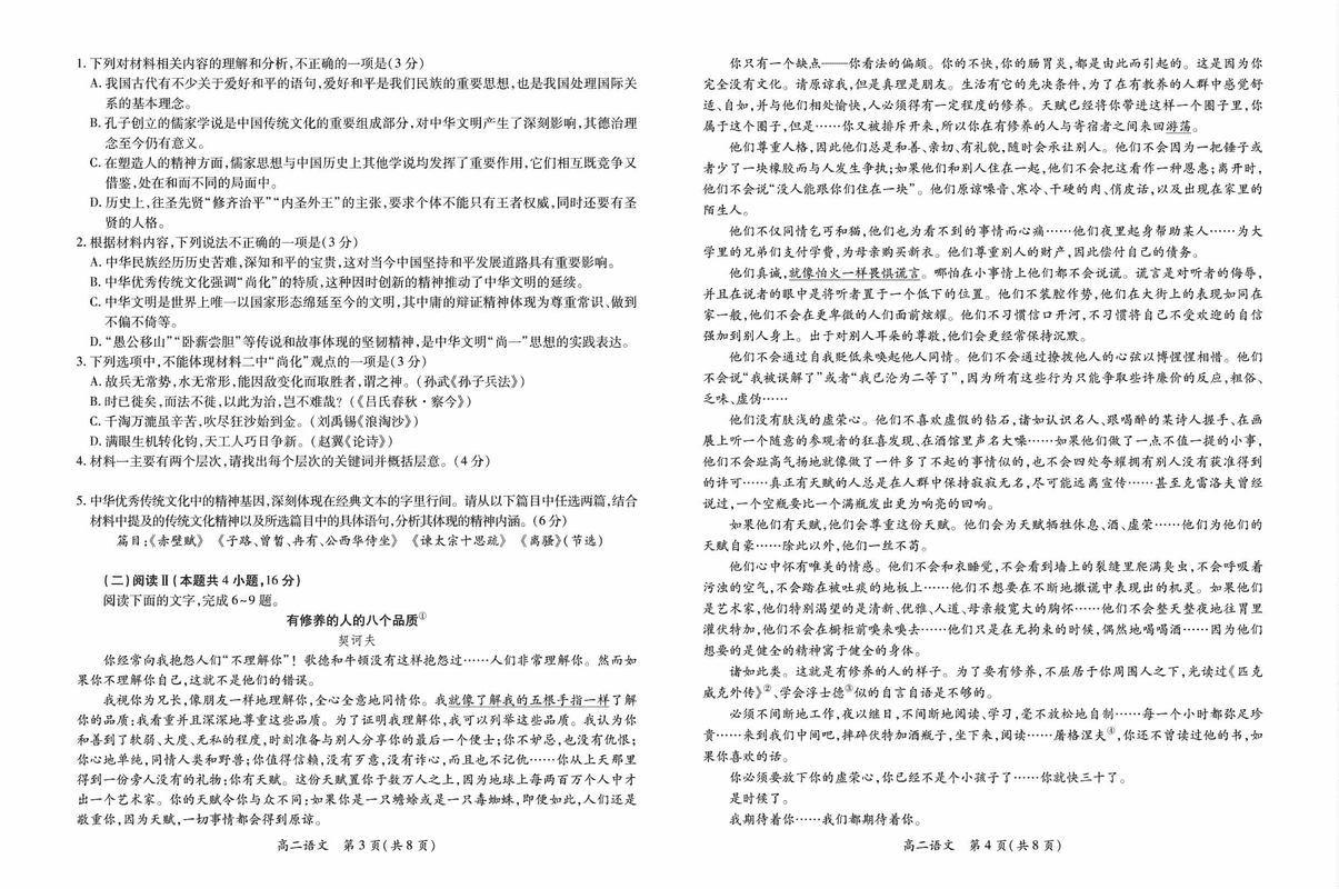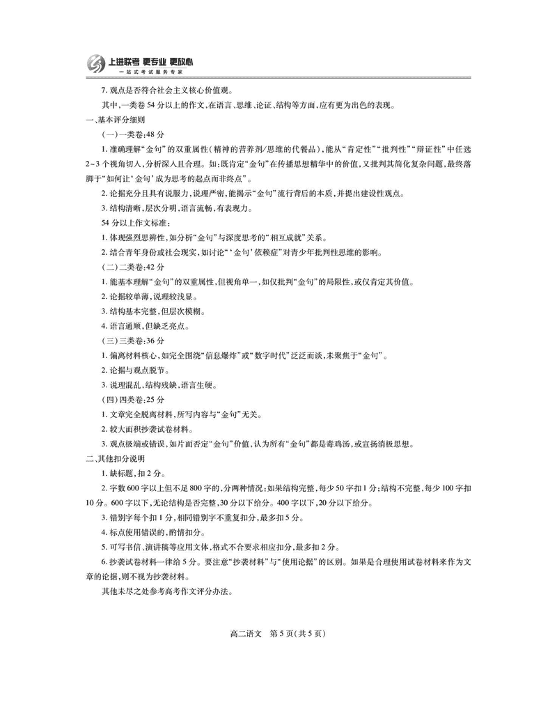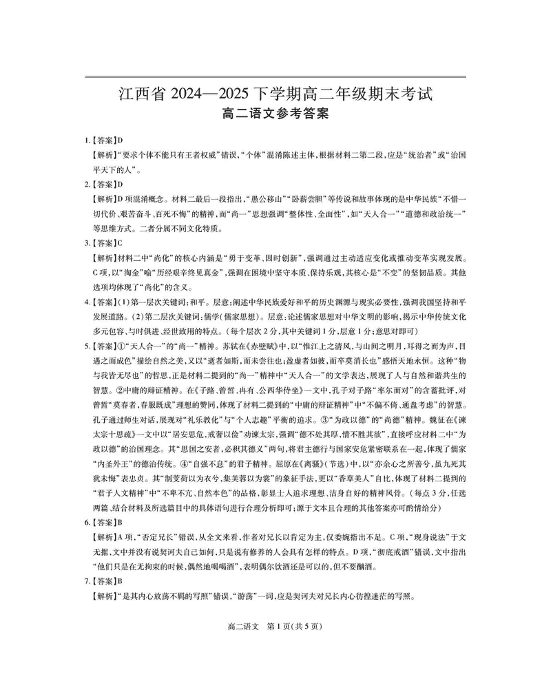 江西省上进联考2024-2025学年高二下学期6月期末语文试题及答案 时间:2025-07-08 江西 高中语文 江西省上进联考2024-2025学年高二下学期6月期末语文考试已于近日开考,为方便考生考后及时查看考试情况,查漏补缺、弥补不足,本文整理了试题答案解析相关信息! 语文试题及答案解析