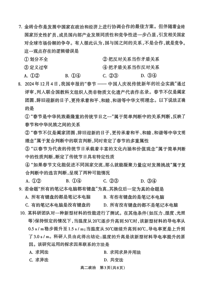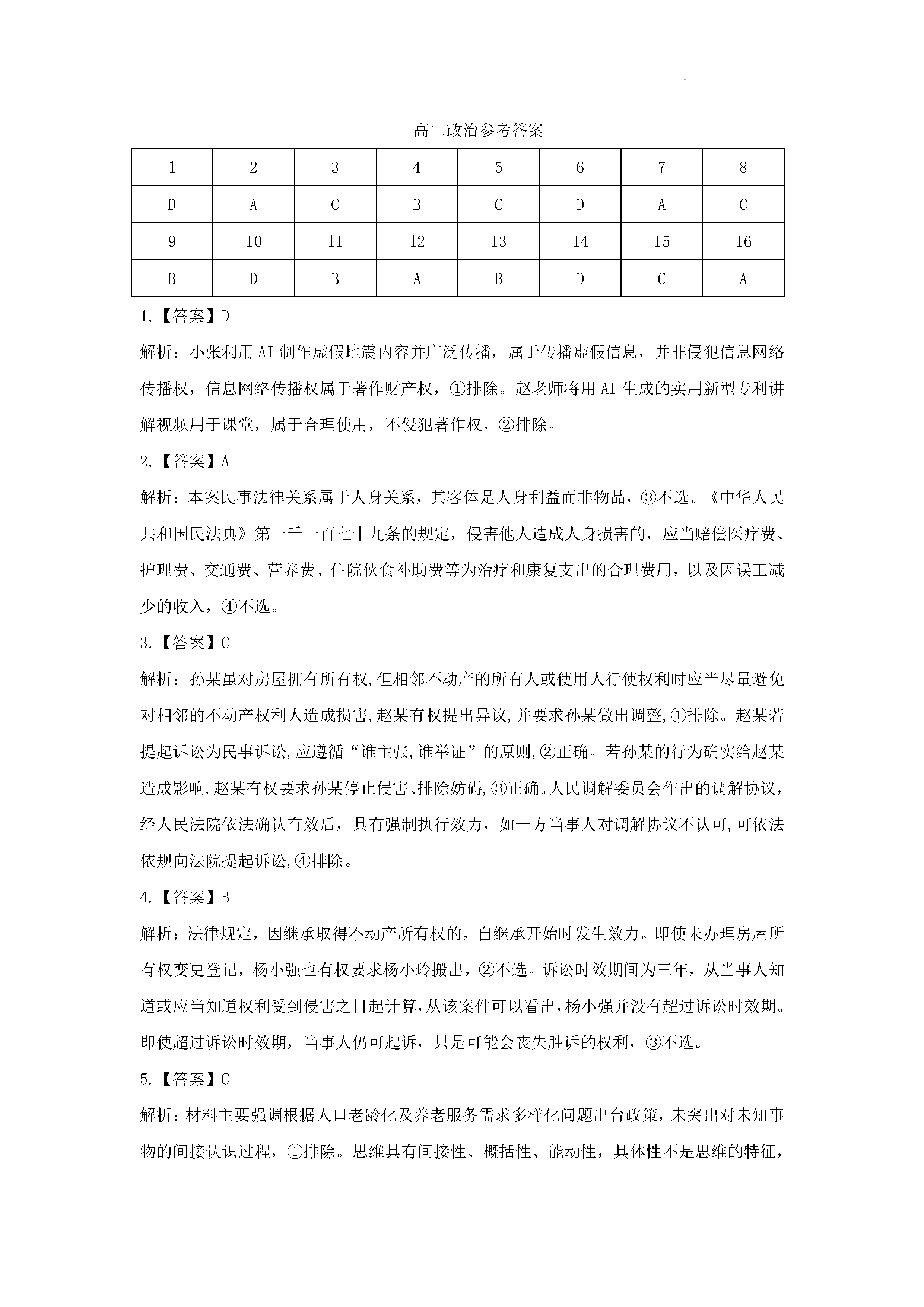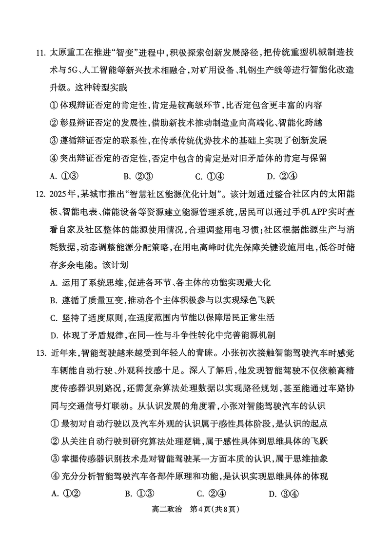 山西吕梁2024-2025学年高二第二学期期末政治试题及答案 时间:2025-07-08 山西 高中政治 山西省吕梁市2024-2025学年高二第二学期期末调研政治考试已于近日开考,为方便考生考后及时查看考试情况,查漏补缺、弥补不足,本文整理了试题答案解析相关信息! 政治试题及答案解析