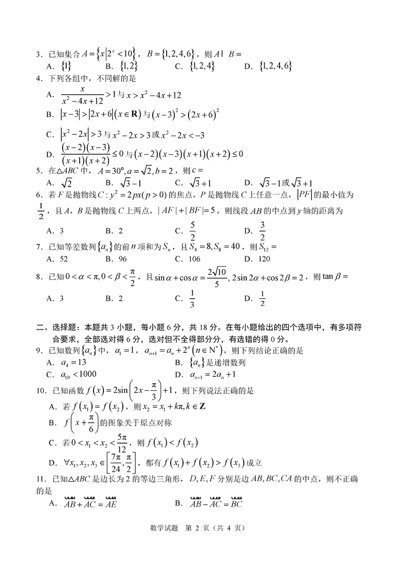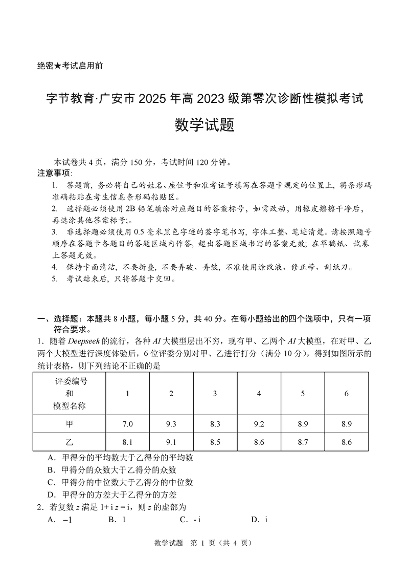 字节教育(广安、雅安、简阳市)2025年2023级零诊模拟数学试题及答案