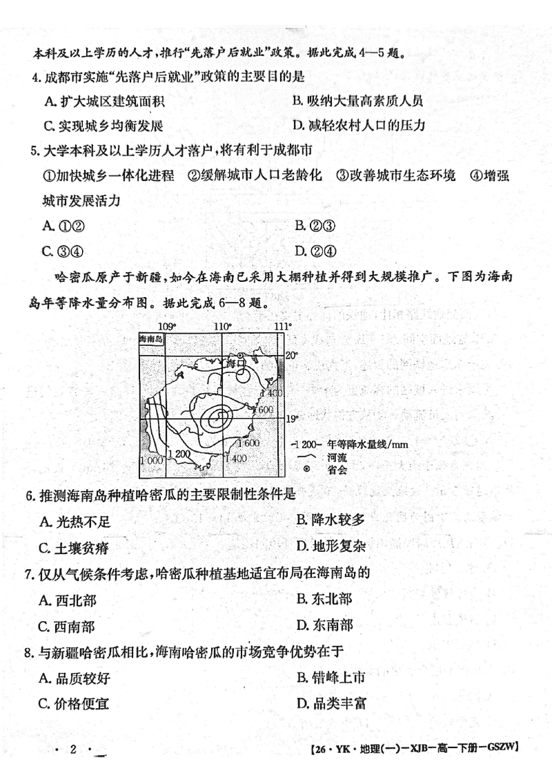 甘肃省2024-2025学年高一下学期期末地理试题及答案 时间:2025-07-08 甘肃 高中地理 甘肃省2024-2025学年高一年级下学期期末地理考试已于近日开考,为方便考生考后及时查看考试情况,查漏补缺、弥补不足,本文整理了试题答案解析相关信息! 地理试题及答案解析