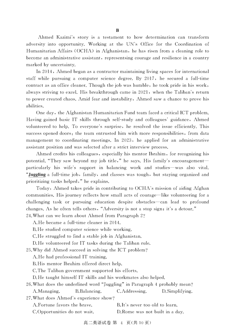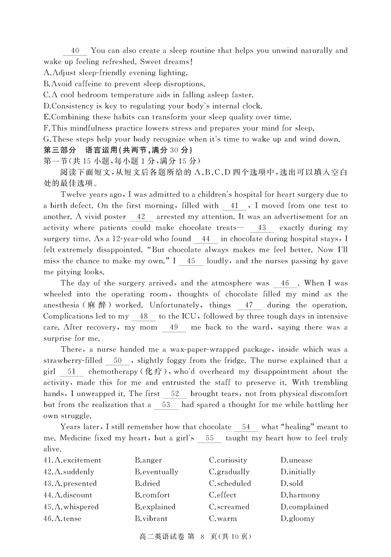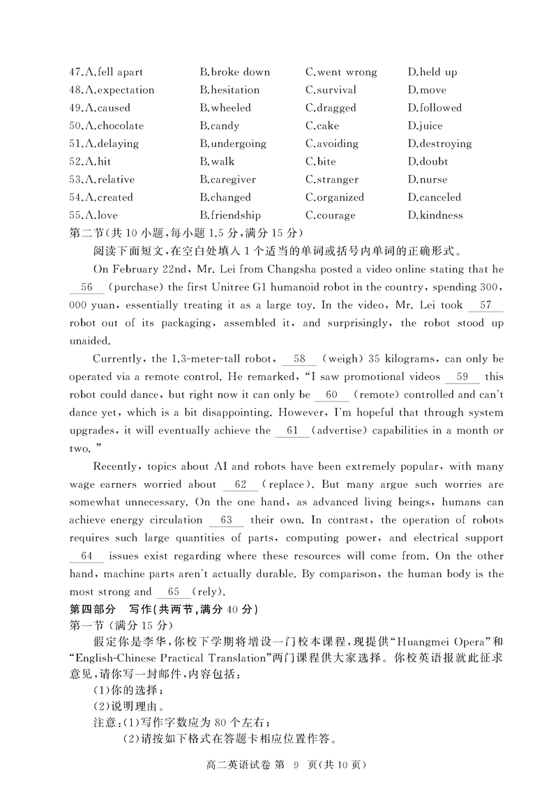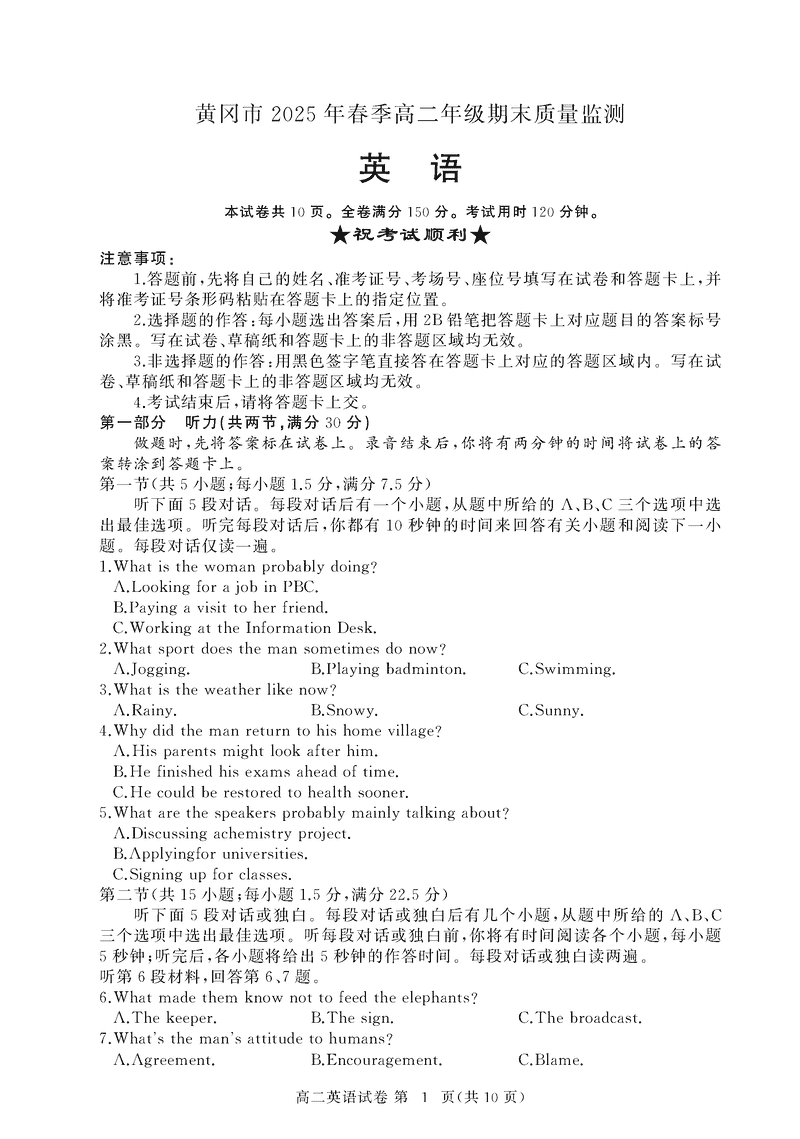 黄冈市2025年高二下学期期末英语试题及答案 时间:2025-07-08 湖北 高中英语 湖北省黄冈市2024-2025学年高二下学期期末质量监测英语考试已于近日开考,为方便考生考后及时查看考试情况,查漏补缺、弥补不足,本文整理了试题答案解析相关信息! 英语试题及答案解析