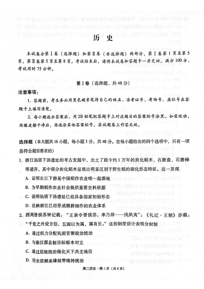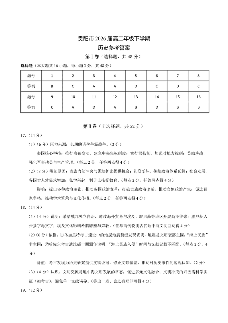 贵阳市2024-2025学年高二下学期6月期末历史试题及答案 时间:2025-07-08 贵州 高中历史 贵州省贵阳市2024-2025学年高二下学期6月期末历史考试已于近日开考,为方便考生考后及时查看考试情况,查漏补缺、弥补不足,本文整理了试题答案解析相关信息! 历史试题及答案解析