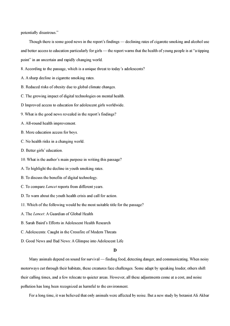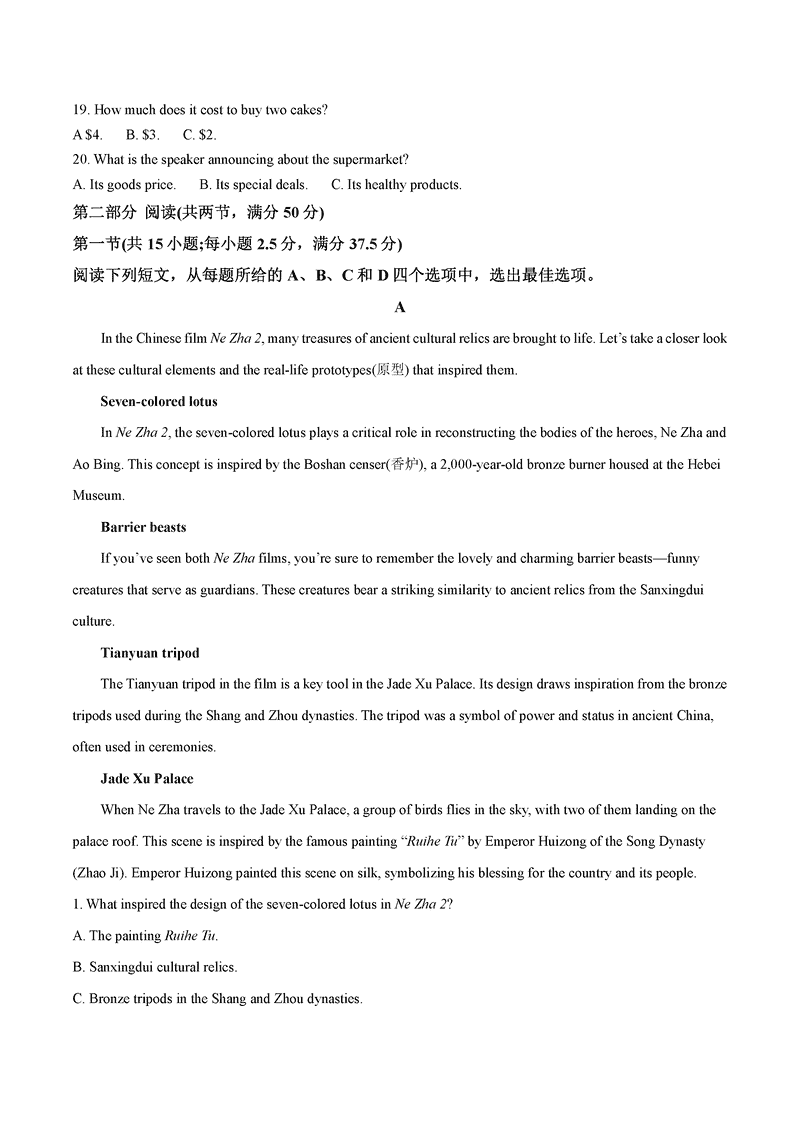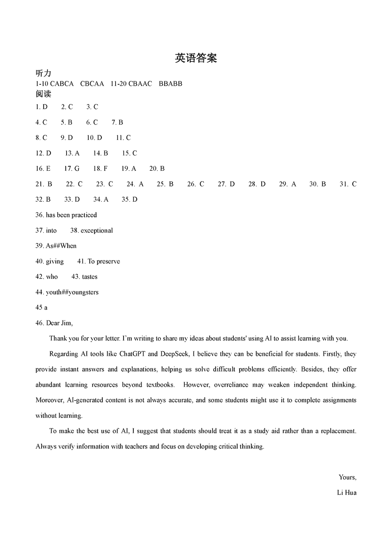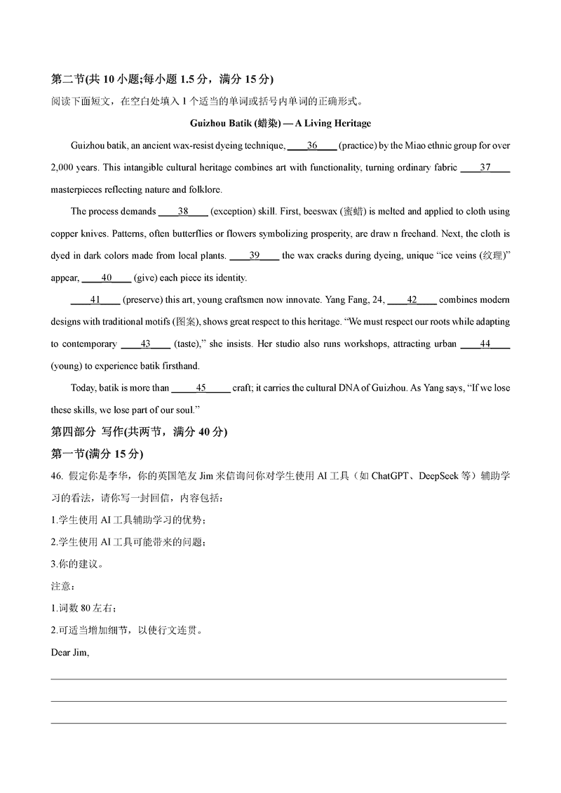 贵阳市2024-2025学年高二下学期6月期末英语试题及答案 时间:2025-07-08 贵州 高中英语 贵州省贵阳市2024-2025学年高二下学期6月期末英语考试已于近日开考,为方便考生考后及时查看考试情况,查漏补缺、弥补不足,本文整理了试题答案解析相关信息! 英语试题及答案解析