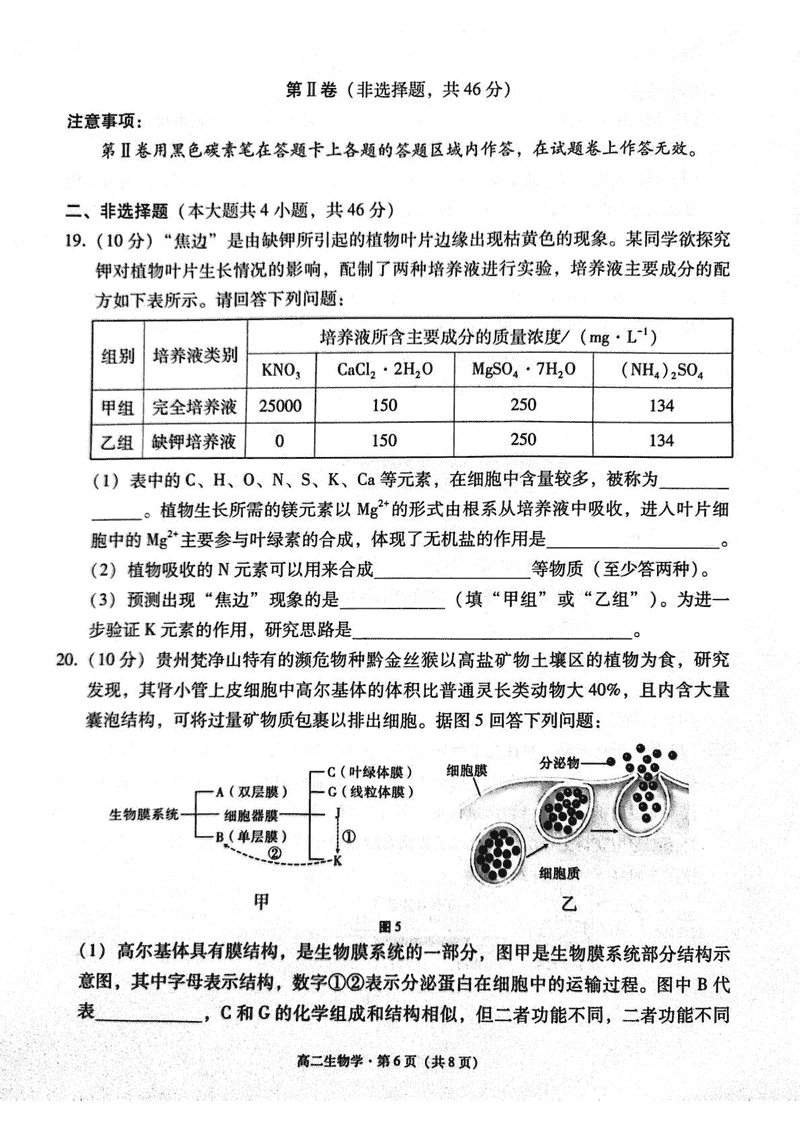 贵阳市2024-2025学年高二下学期6月期末生物试题及答案 时间:2025-07-08 贵州 高中生物 贵州省贵阳市2024-2025学年高二下学期6月期末生物考试已于近日开考,为方便考生考后及时查看考试情况,查漏补缺、弥补不足,本文整理了试题答案解析相关信息! 生物试题及答案解析
