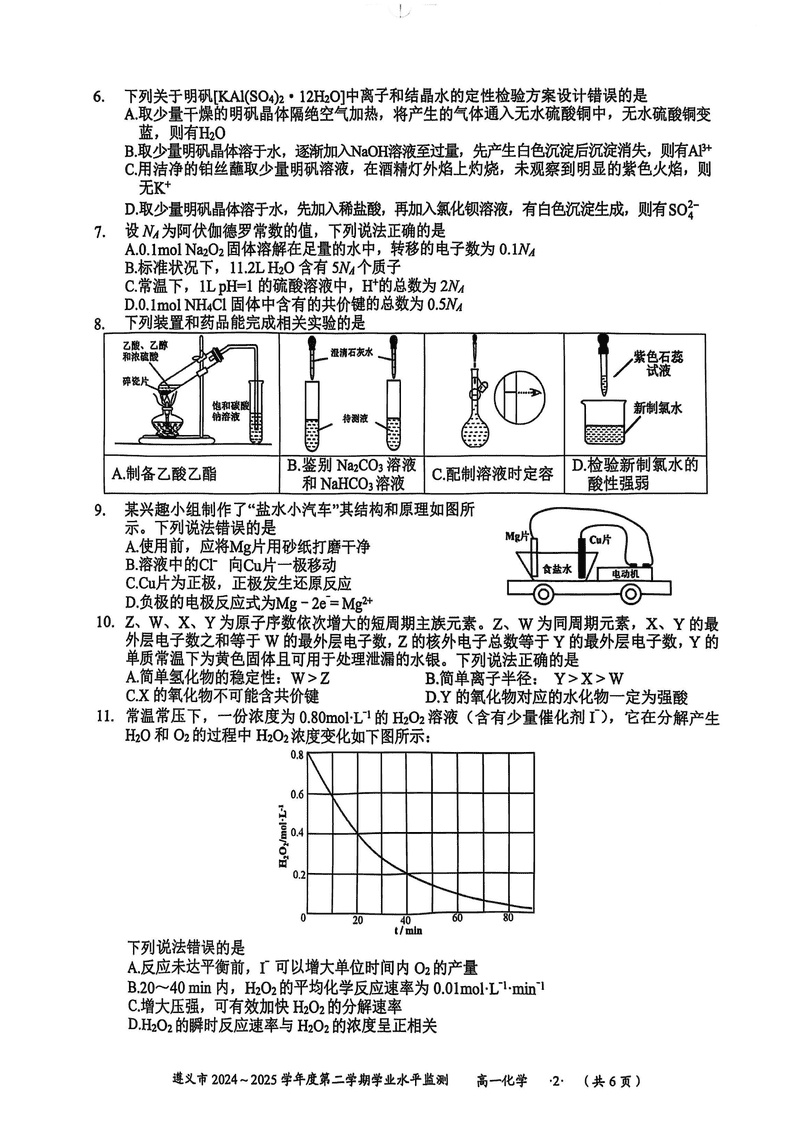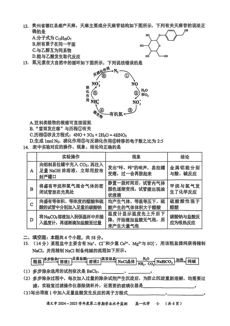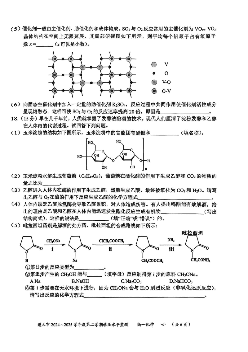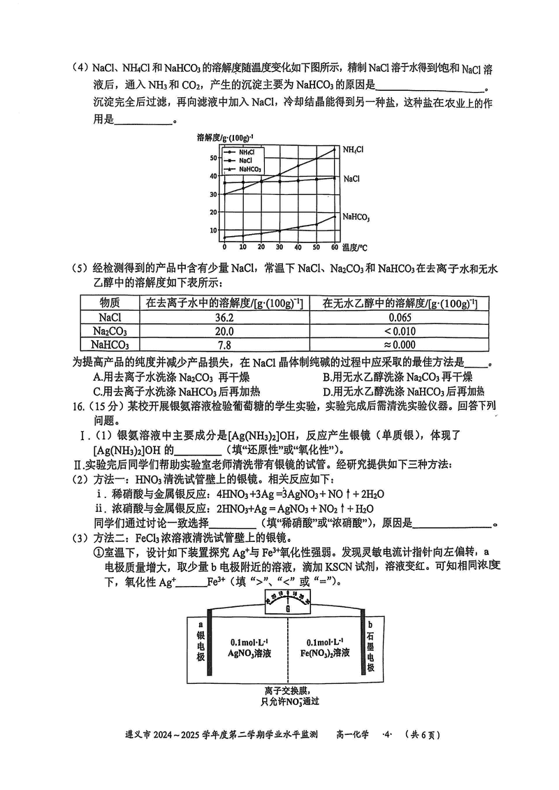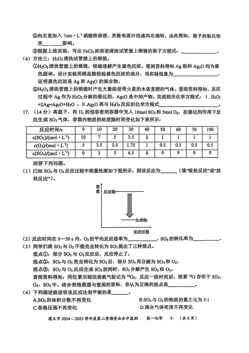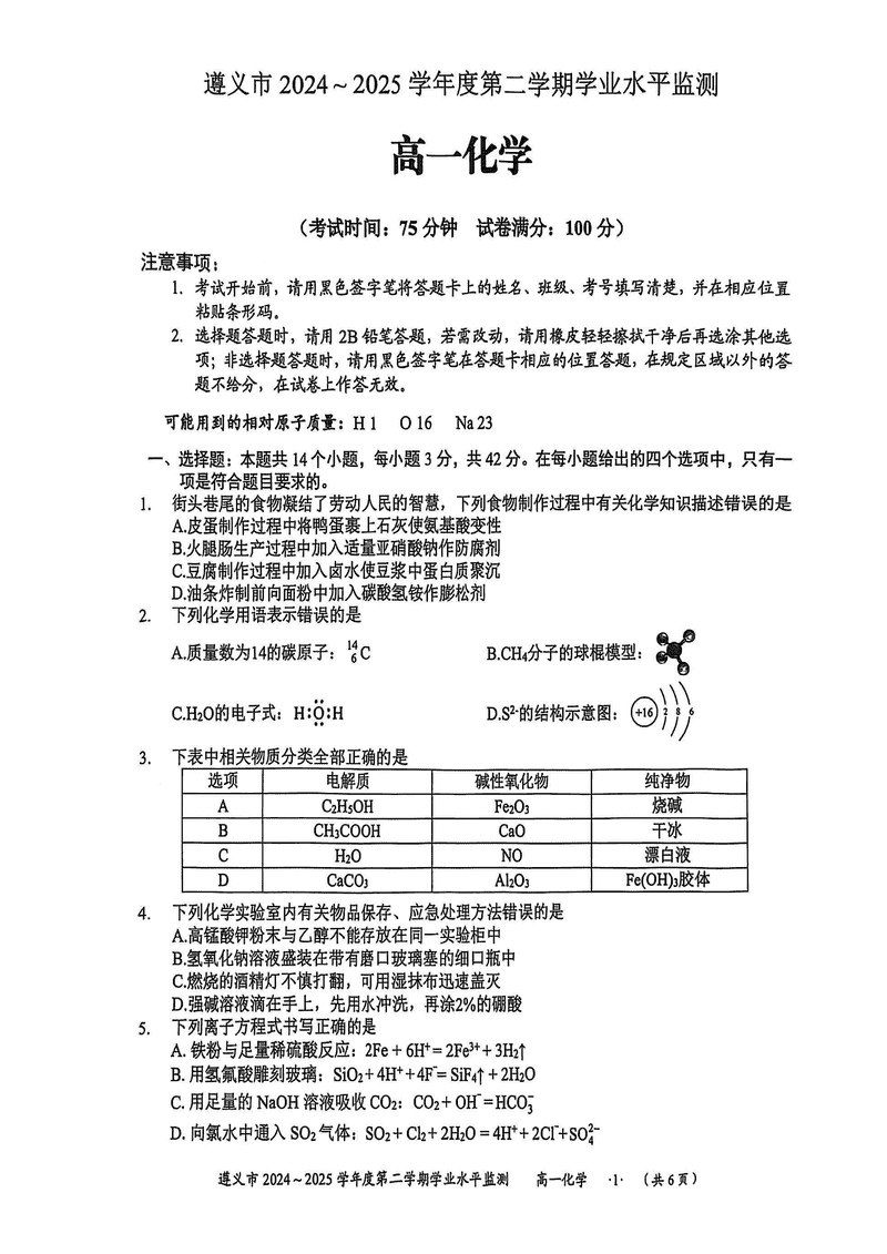 遵义市2024-2025学年高一下学期7月期末化学试题及答案 时间:2025-07-08 贵州 高中化学 贵州省遵义市2024-2025学年高一下学期7月期末学业水平监测化学考试已于近日开考,为方便考生考后及时查看考试情况,查漏补缺、弥补不足,本文整理了试题答案解析相关信息! 化学试题及答案解析