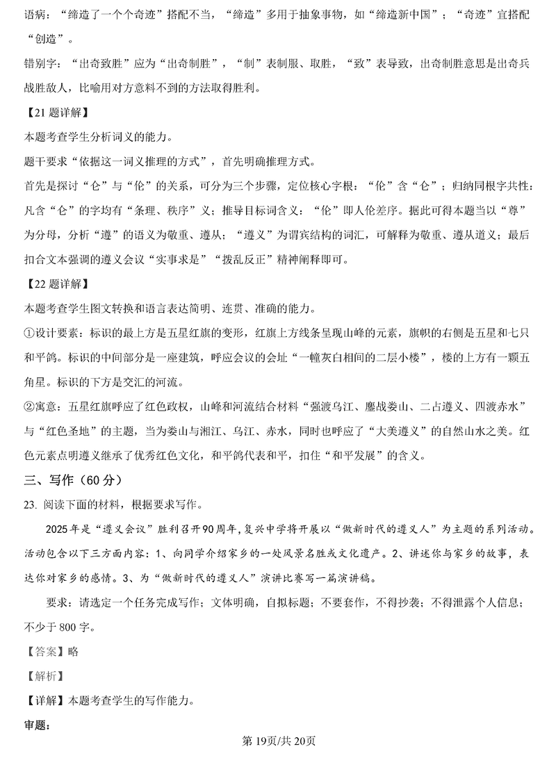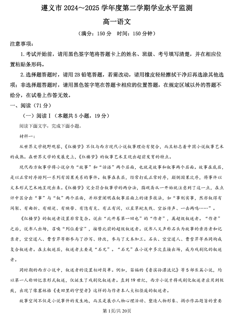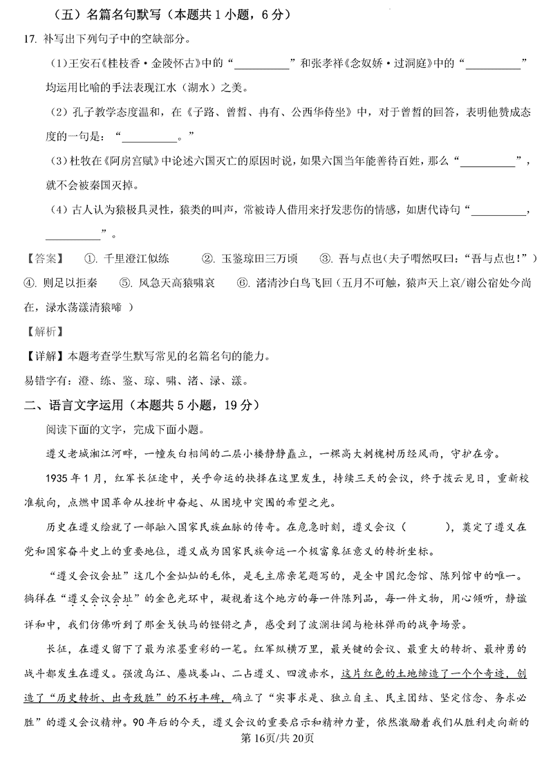 遵义市2024-2025学年高一下学期7月期末语文试题及答案 时间:2025-07-08 贵州 高中语文 贵州省遵义市2024-2025学年高一下学期7月期末学业水平监测语文考试已于近日开考,为方便考生考后及时查看考试情况,查漏补缺、弥补不足,本文整理了试题答案解析相关信息! 语文试题及答案解析