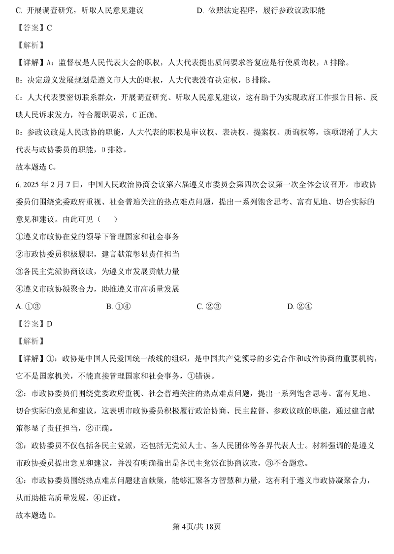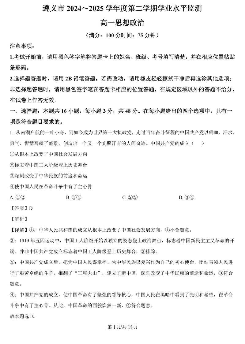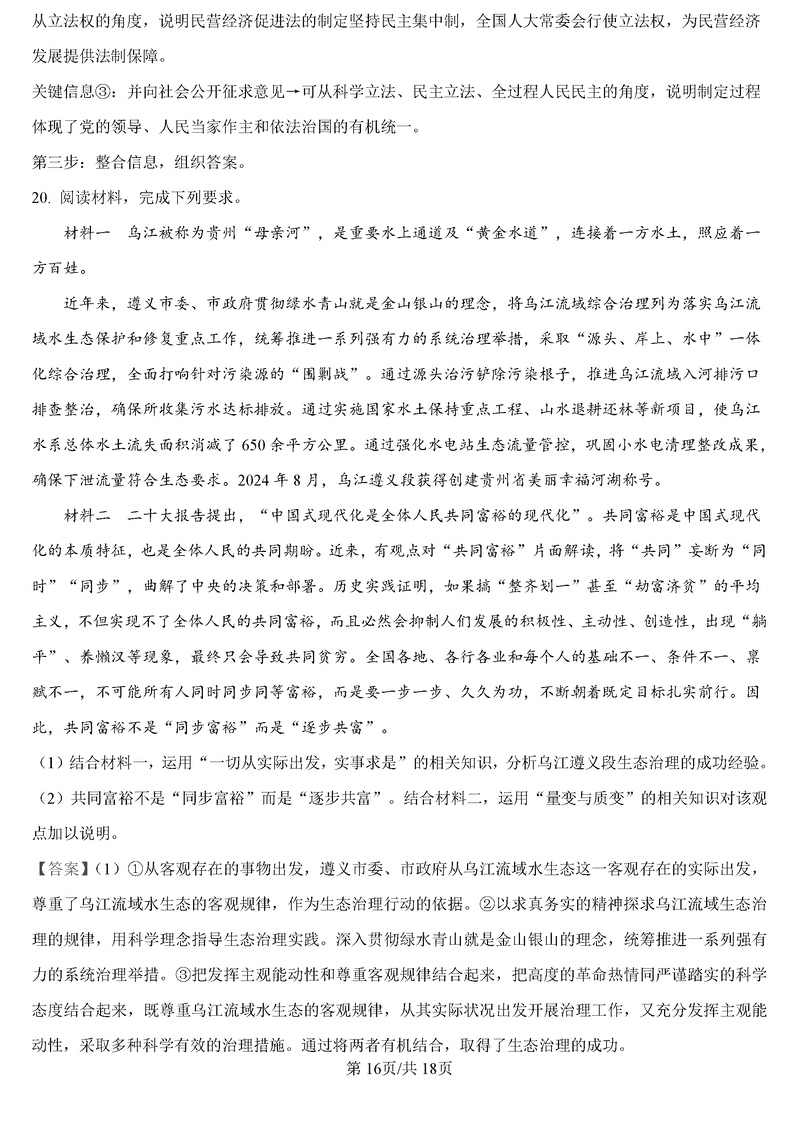 遵义市2024-2025学年高一下学期7月期末政治试题及答案 时间:2025-07-08 贵州 高中政治 贵州省遵义市2024-2025学年高一下学期7月期末学业水平监测政治考试已于近日开考,为方便考生考后及时查看考试情况,查漏补缺、弥补不足,本文整理了试题答案解析相关信息! 政治试题及答案解析