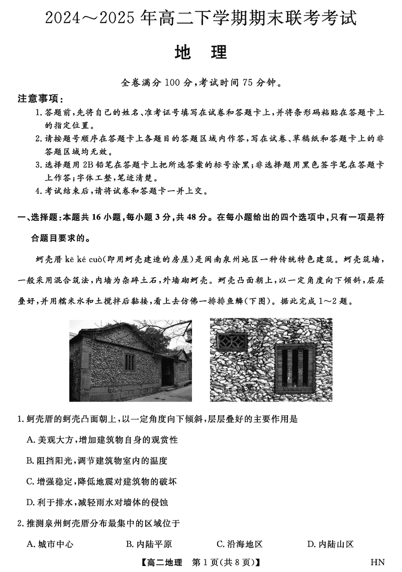 河南金科·新未来2024~2025年高二下学期期末联考地理试题及答案 时间:2025-07-08 河南 高中地理 河南省金科·新未来2024~2025年高二下学期期末联考地理考试已于近日开考,为方便考生考后及时查看考试情况,查漏补缺、弥补不足,本文整理了试题答案解析相关信息! 地理试题及答案解析