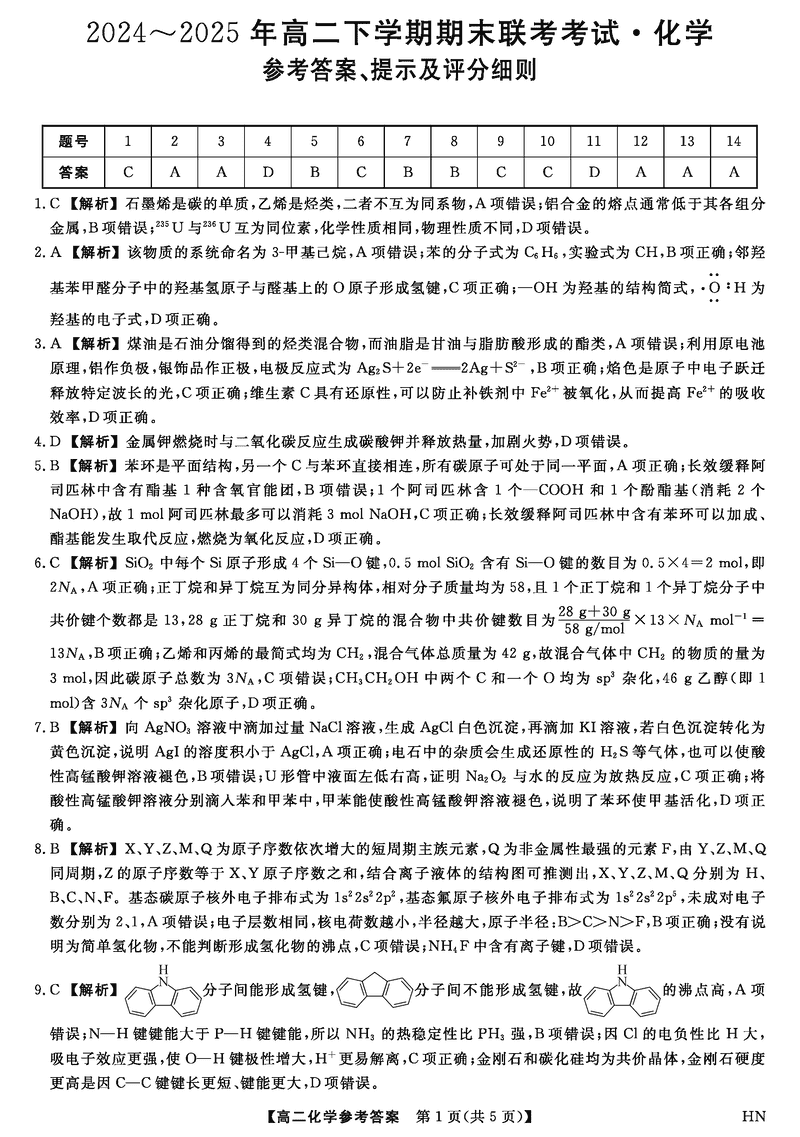 河南金科·新未来2024~2025年高二下学期期末联考化学试题及答案 时间:2025-07-08 河南 高中化学 河南省金科·新未来2024~2025年高二下学期期末联考化学考试已于近日开考,为方便考生考后及时查看考试情况,查漏补缺、弥补不足,本文整理了试题答案解析相关信息! 化学试题及答案解析