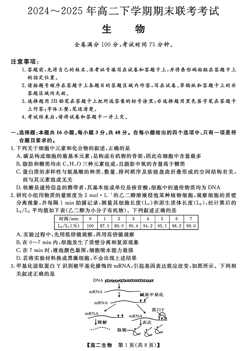 河南金科·新未来2024~2025年高二下学期期末联考生物试题及答案 时间:2025-07-08 河南 高中生物 河南省金科·新未来2024~2025年高二下学期期末联考生物考试已于近日开考,为方便考生考后及时查看考试情况,查漏补缺、弥补不足,本文整理了试题答案解析相关信息! 生物试题及答案解析