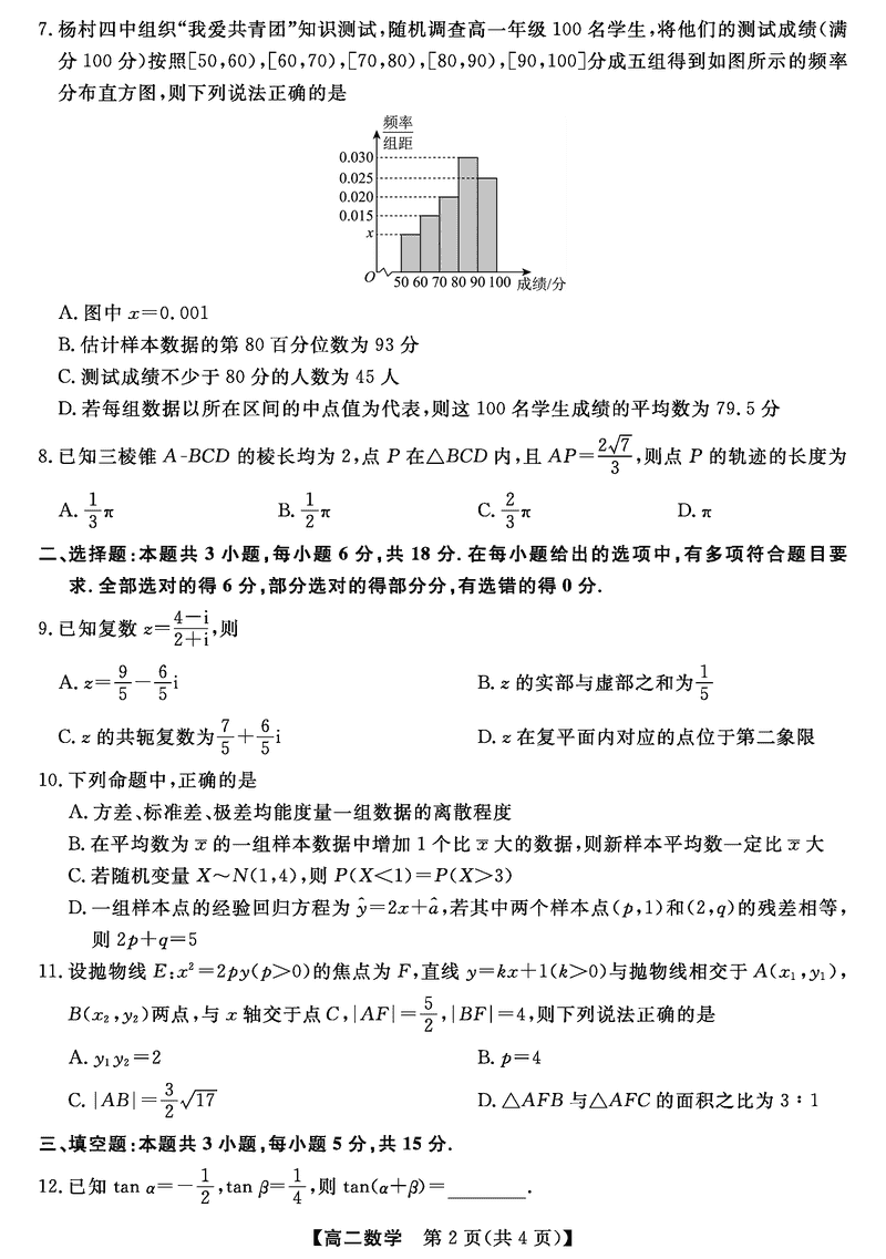 河南金科·新未来2024~2025年高二下学期期末联考数学试题及答案 时间:2025-07-08 河南 高中数学 河南省金科·新未来2024~2025年高二下学期期末联考数学考试已于近日开考,为方便考生考后及时查看考试情况,查漏补缺、弥补不足,本文整理了试题答案解析相关信息! 数学试题及答案解析