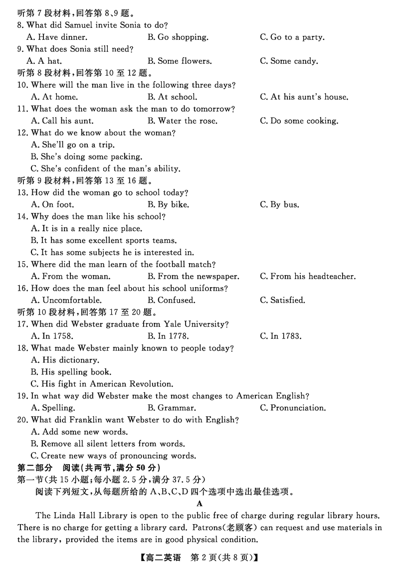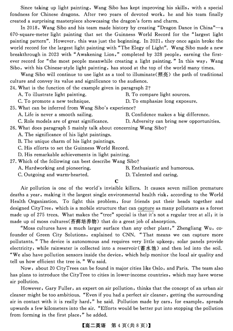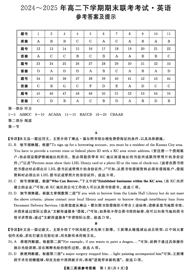 河南金科·新未来2024~2025年高二下学期期末联考英语试题及答案 时间:2025-07-08 河南 高中英语 河南省金科·新未来2024~2025年高二下学期期末联考英语考试已于近日开考,为方便考生考后及时查看考试情况,查漏补缺、弥补不足,本文整理了试题答案解析相关信息! 英语试题及答案解析