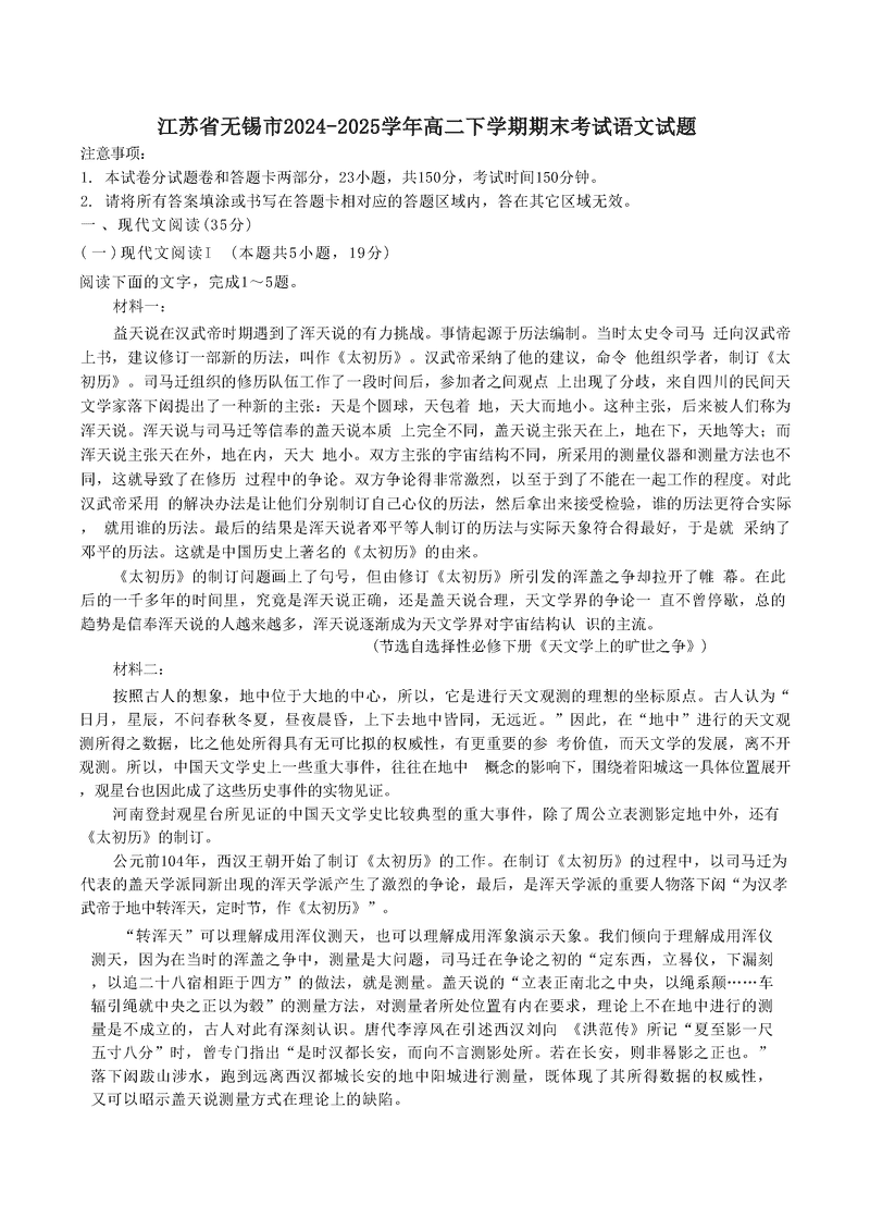无锡市普通高中2025年春学期高二期终调研语文试题及答案 时间:2025-07-08 江苏 高中语文 江苏省无锡市普通高中2025年春学期高二期终调研语文考试已于近日开考,为方便考生考后及时查看考试情况,查漏补缺、弥补不足,本文整理了试题答案解析相关信息! 语文试题及答案解析