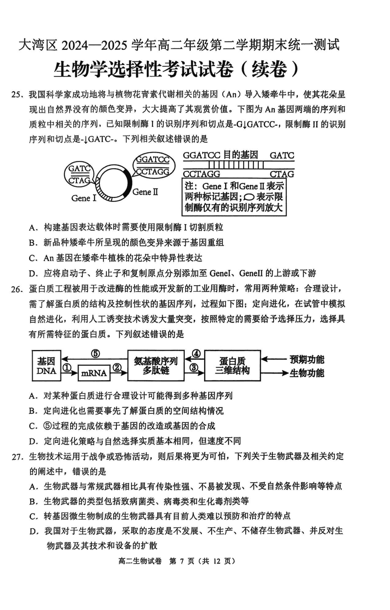 广东大湾区2024-2025学年高二下学期期末生物试题及答案 时间:2025-07-09 广东 高中生物 广东省大湾区2024-2025学年高二下学期期末统一测试生物考试已于近日开考,为方便考生考后及时查看考试情况,查漏补缺、弥补不足,本文整理了试题答案解析相关信息! 生物试题及答案解析