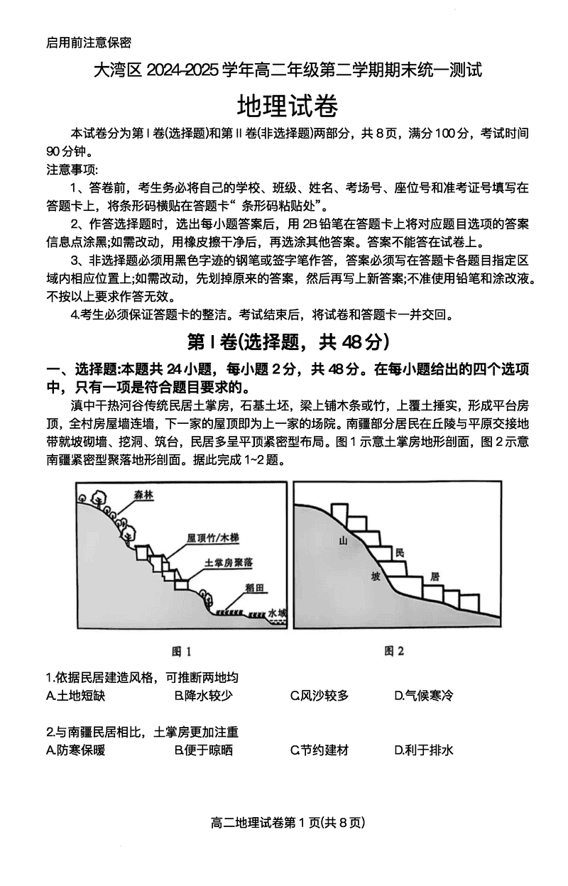 广东大湾区2024-2025学年高二下学期期末地理试题及答案 时间:2025-07-09 广东 高中地理 广东省大湾区2024-2025学年高二下学期期末统一测试地理考试已于近日开考,为方便考生考后及时查看考试情况,查漏补缺、弥补不足,本文整理了试题答案解析相关信息! 地理试题及答案解析