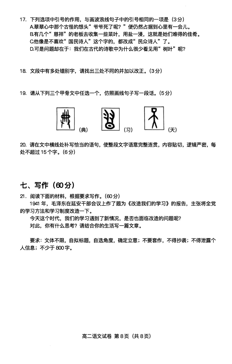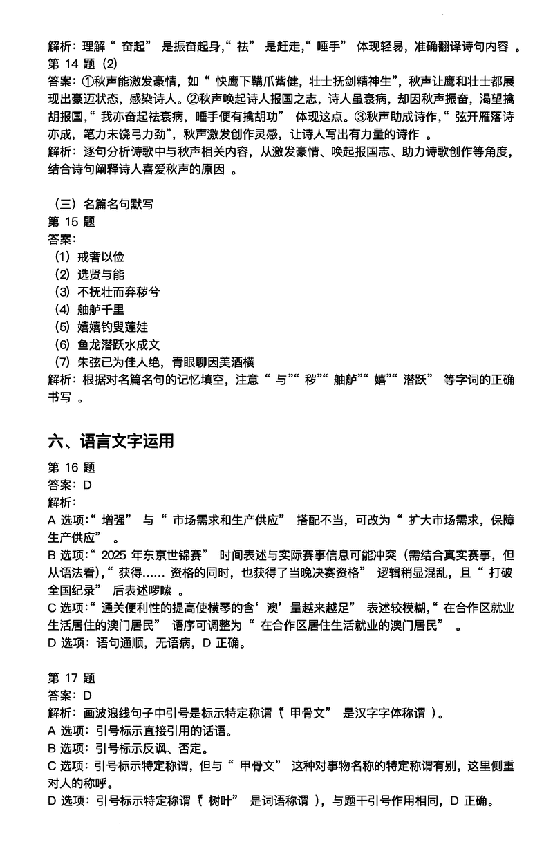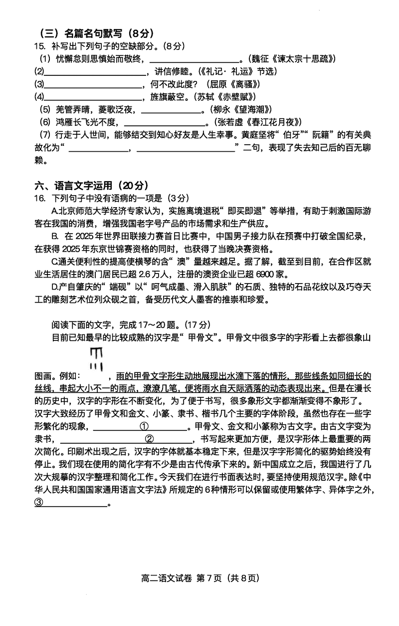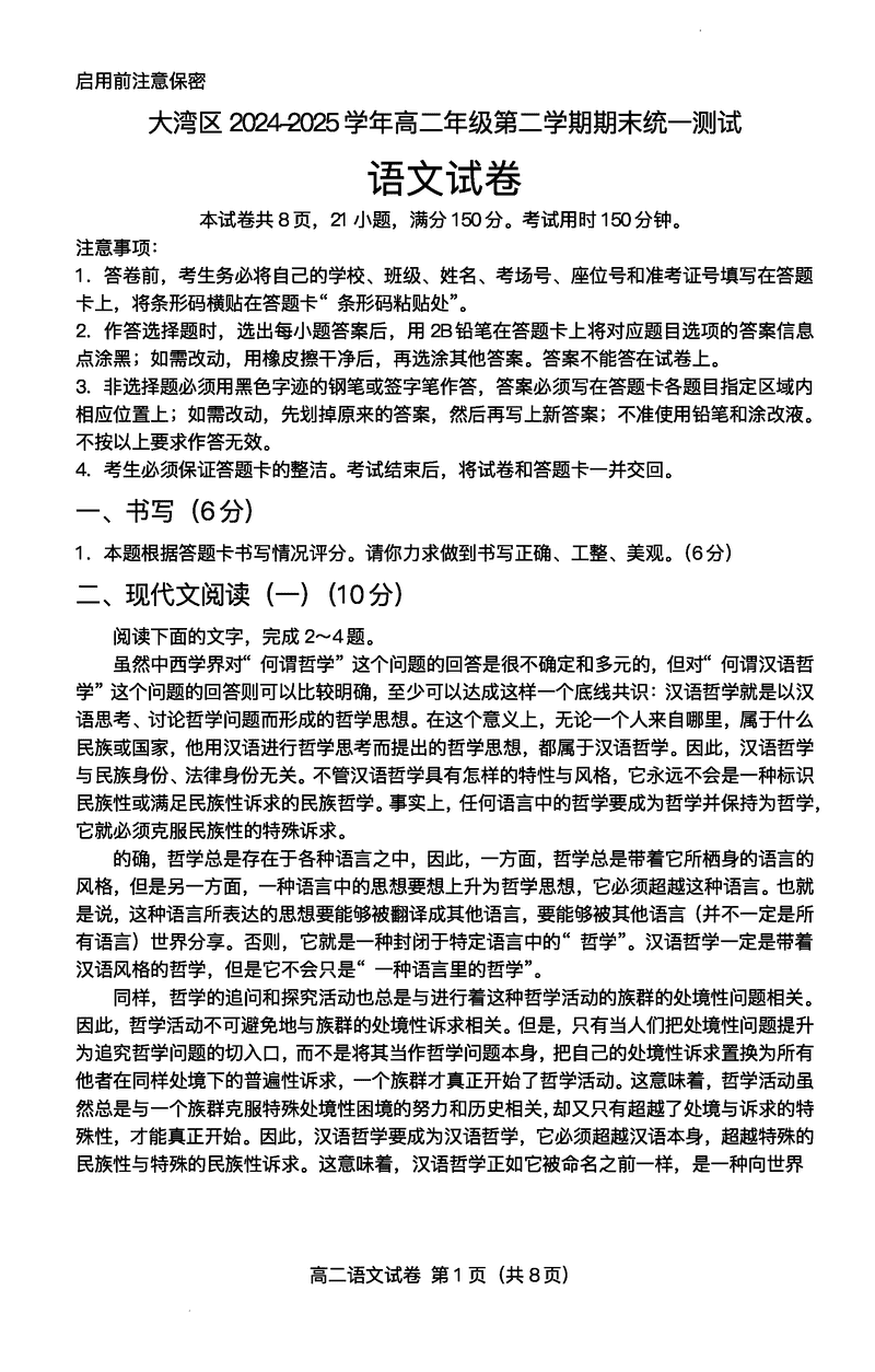 广东大湾区2024-2025学年高二下学期期末语文试题及答案 时间:2025-07-09 广东 高中语文 广东省大湾区2024-2025学年高二下学期期末统一测试语文考试已于近日开考,为方便考生考后及时查看考试情况,查漏补缺、弥补不足,本文整理了试题答案解析相关信息! 语文试题及答案解析