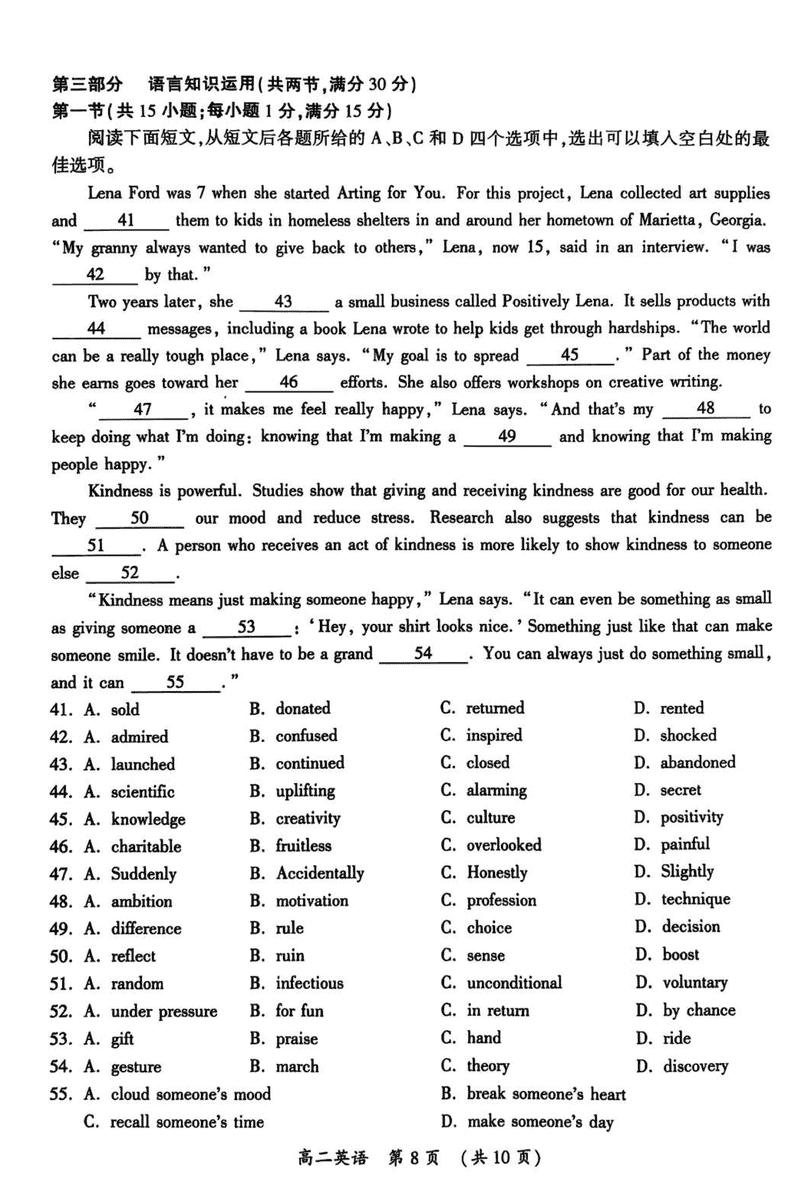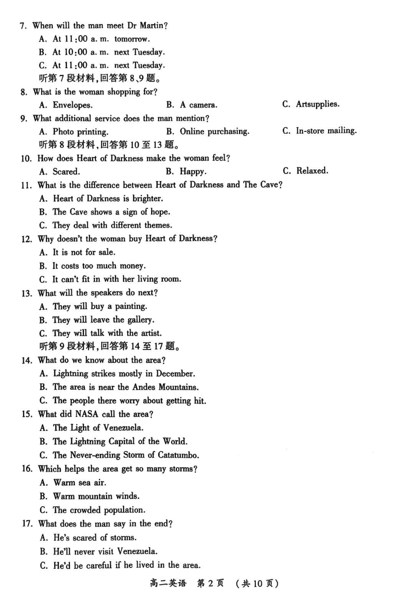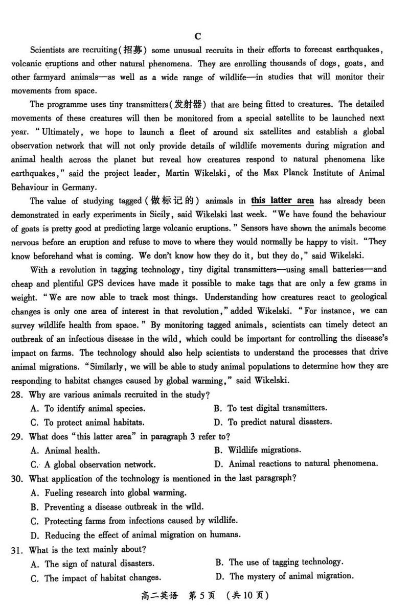 开封市2024-2025学年高二下学期期末调研英语试题及答案 时间:2025-07-09 河南 高中英语 河南省开封市2024-2025学年高二下学期期末调研英语考试已于近日开考,为方便考生考后及时查看考试情况,查漏补缺、弥补不足,本文整理了试题答案解析相关信息! 英语试题及答案解析