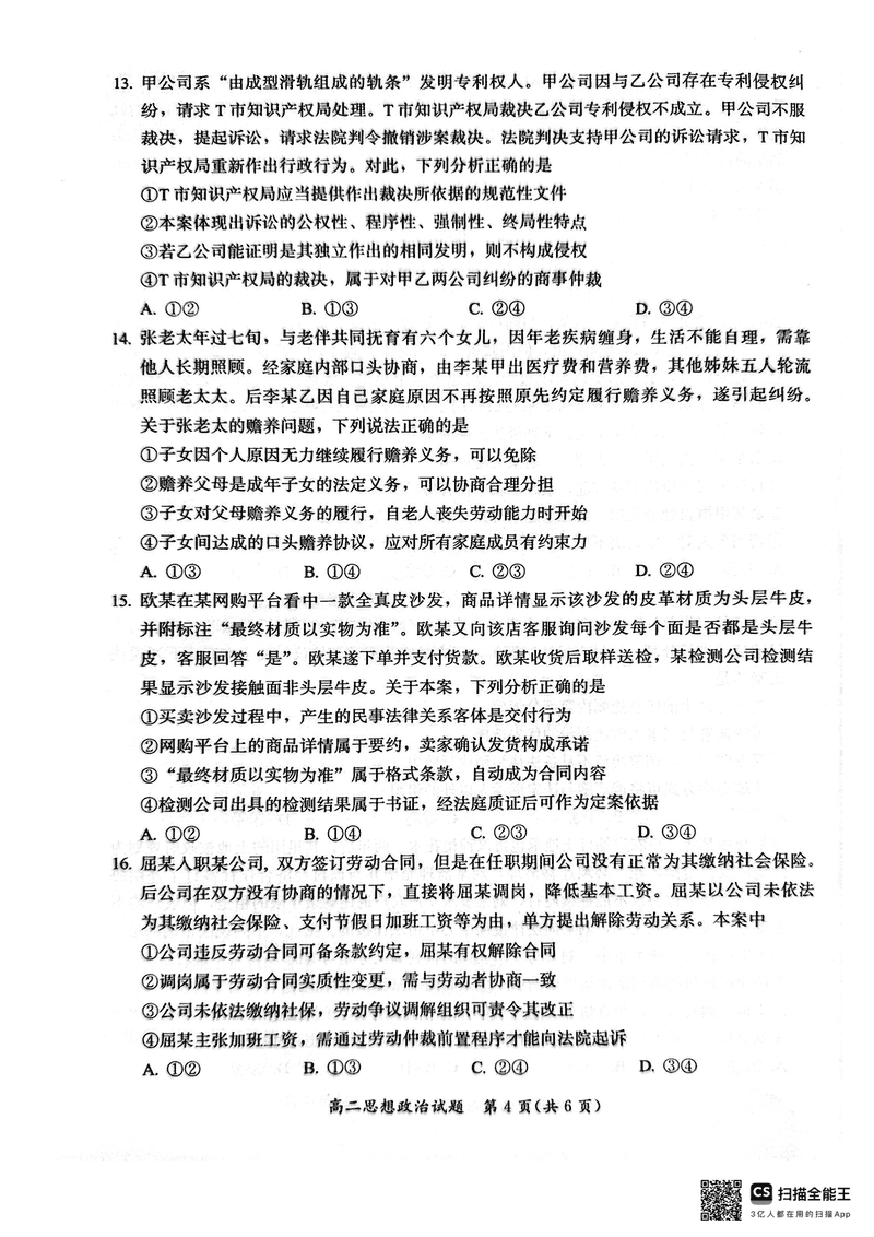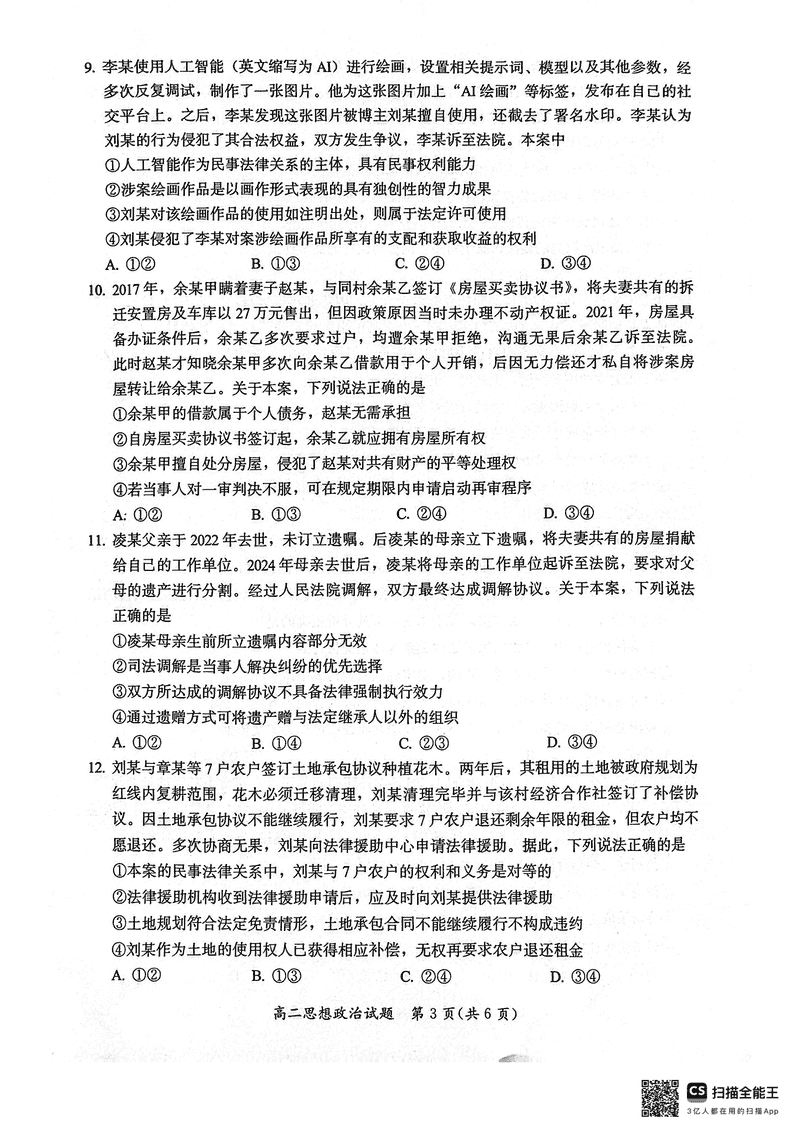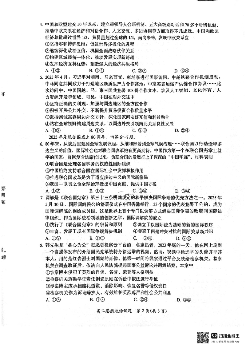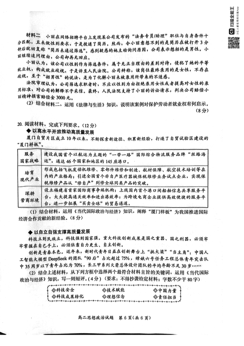 厦门市2024-2025学年高二下学期期末质检政治试题及答案 时间:2025-07-09 福建 高中政治 福建省厦门市2024-2025学年高二下学期期末质量检测政治考试已于近日开考,为方便考生考后及时查看考试情况,查漏补缺、弥补不足,本文整理了试题答案解析相关信息! 政治试题及答案解析
