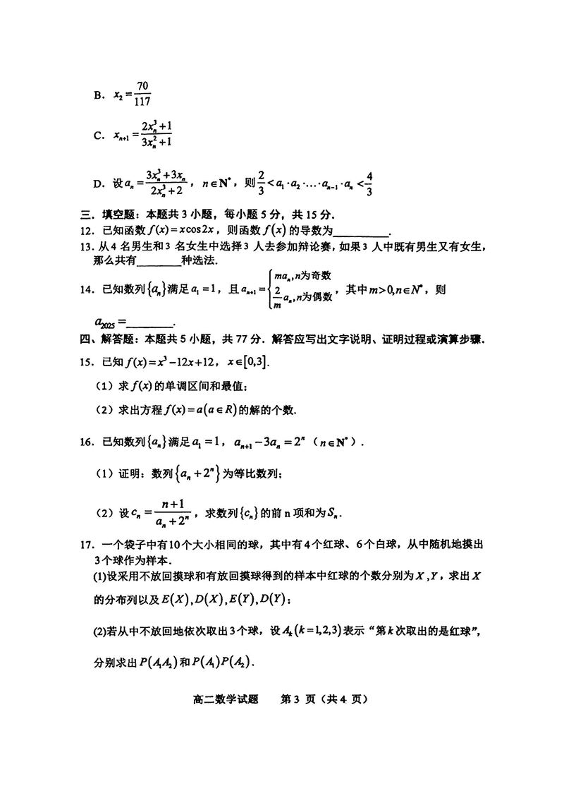 淄博市2026届高二下学期教学质检数学试题及答案 时间:2025-07-09 山东 高中数学 山东省淄博市2026届第二学期高二教学质量检测数学考试已于近日开考,为方便考生考后及时查看考试情况,查漏补缺、弥补不足,本文整理了试题答案解析相关信息! 数学试题及答案解析