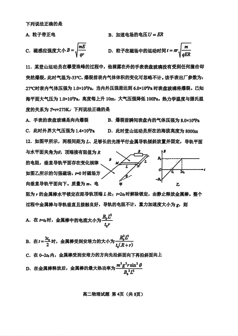 淄博市2026届高二下学期教学质检物理试题及答案 时间:2025-07-09 山东 高中物理 山东省淄博市2026届第二学期高二教学质量检测物理考试已于近日开考,为方便考生考后及时查看考试情况,查漏补缺、弥补不足,本文整理了试题答案解析相关信息! 物理试题及答案解析
