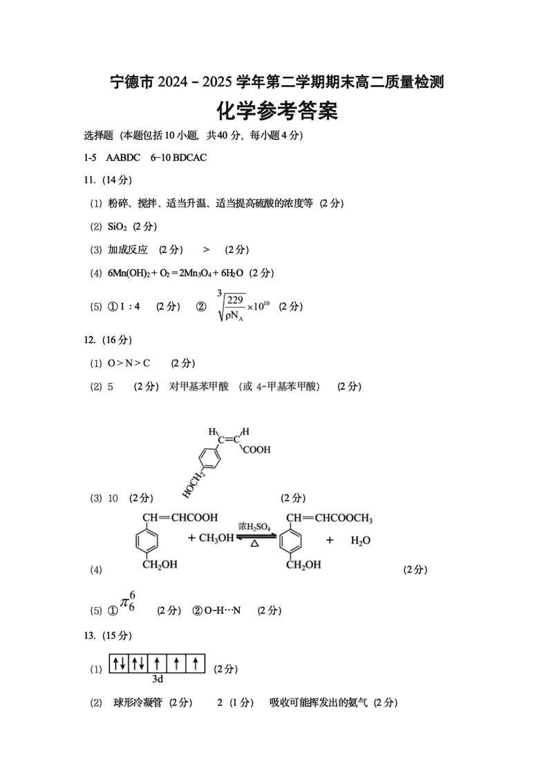 宁德市2024-2025学年高二下学期6月期末化学试题及答案 时间:2025-07-09 福建 高中化学 福建省宁德市2024-2025学年高二下学期6月期末质量检测化学考试已于近日开考,为方便考生考后及时查看考试情况,查漏补缺、弥补不足,本文整理了试题答案解析相关信息! 化学试题及答案解析