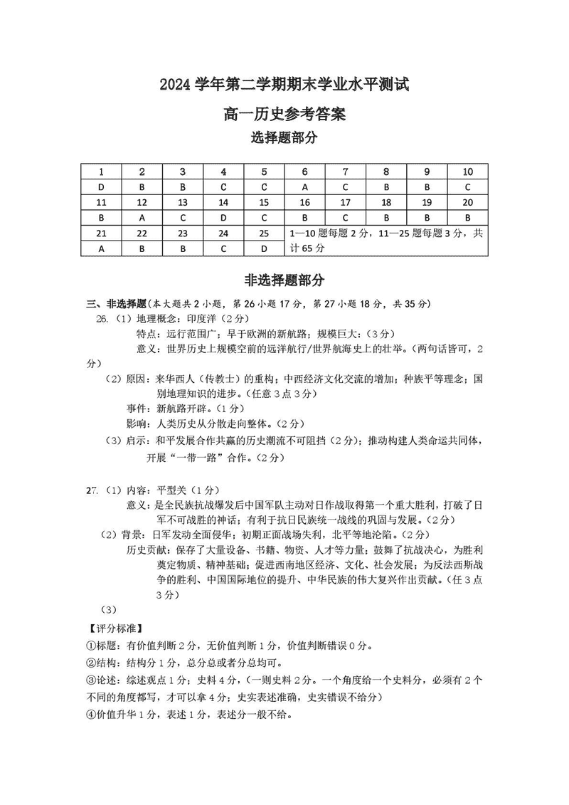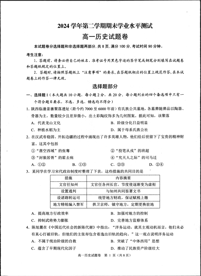 杭州市联谊学校2024-2025学年高一下学期期末历史试题及答案 时间:2025-07-09 浙江 高中历史 浙江省杭州市联谊学校2024-2025学年高一下学期期末学业水平测试历史考试已于近日开考,为方便考生考后及时查看考试情况,查漏补缺、弥补不足,本文整理了试题答案解析相关信息! 历史试题及答案解析