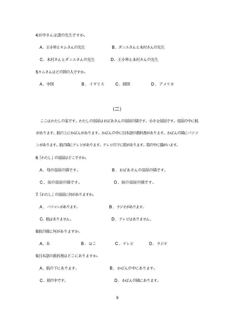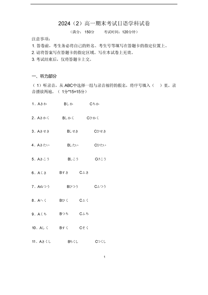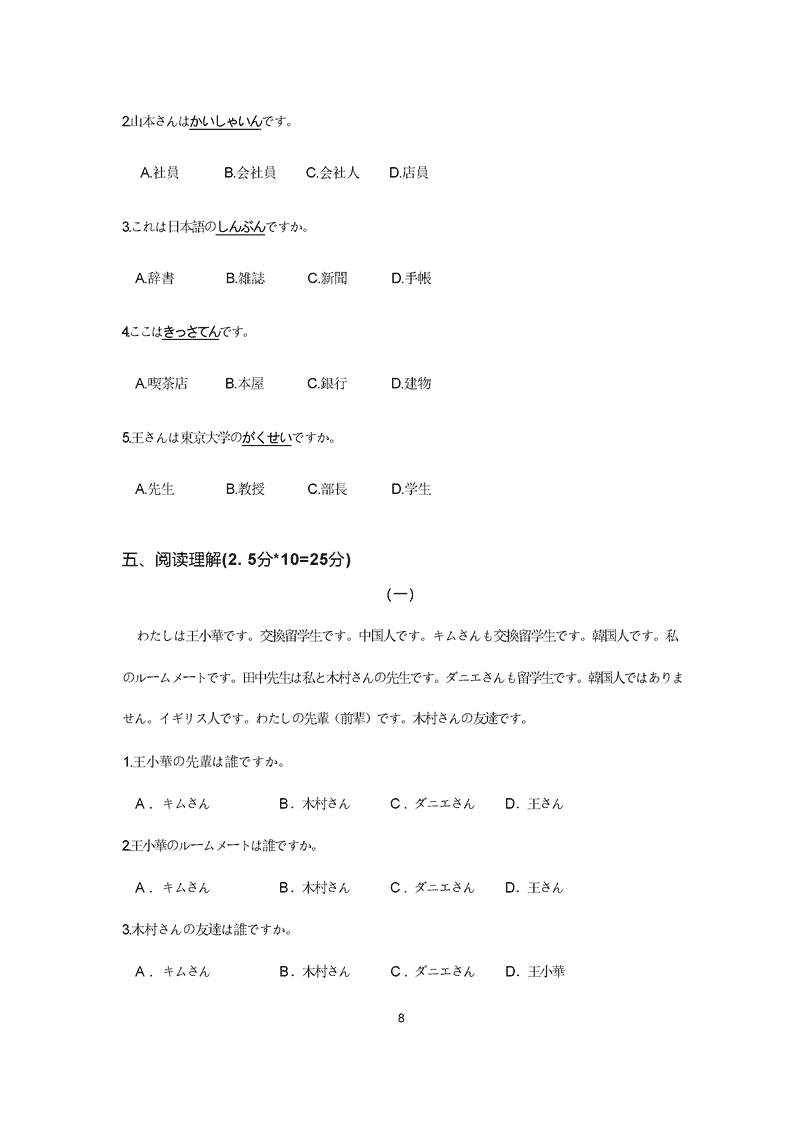 杭州市联谊学校2024-2025学年高一下学期期末日语试题及答案 时间:2025-07-09 浙江 高中英语 浙江省杭州市联谊学校2024-2025学年高一下学期期末学业水平测试日语考试已于近日开考,为方便考生考后及时查看考试情况,查漏补缺、弥补不足,本文整理了试题答案解析相关信息! 日语试题及答案解析