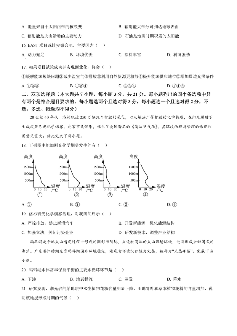 杭州市联谊学校2024-2025学年高一下学期期末地理试题及答案 时间:2025-07-09 浙江 高中地理 浙江省杭州市联谊学校2024-2025学年高一下学期期末学业水平测试地理考试已于近日开考,为方便考生考后及时查看考试情况,查漏补缺、弥补不足,本文整理了试题答案解析相关信息! 地理试题及答案解析