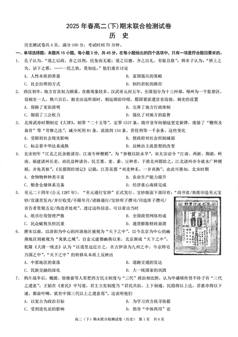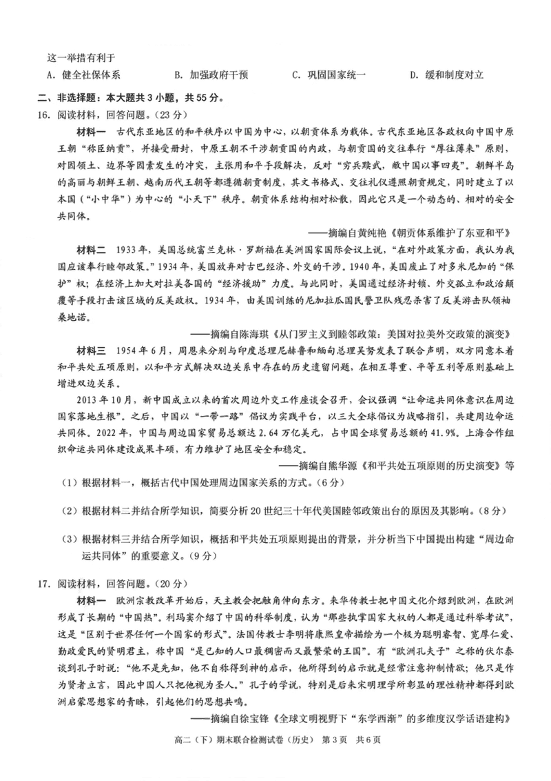 重庆康德教育2025年高二下期末联合检测历史试题及答案 时间:2025-07-10 重庆 高中历史 重庆康德教育2025年高二下期末联合检测历史考试已于近日开考,为方便考生考后及时查看考试情况,查漏补缺、弥补不足,本文整理了试题答案解析相关信息! 历史试题及答案解析