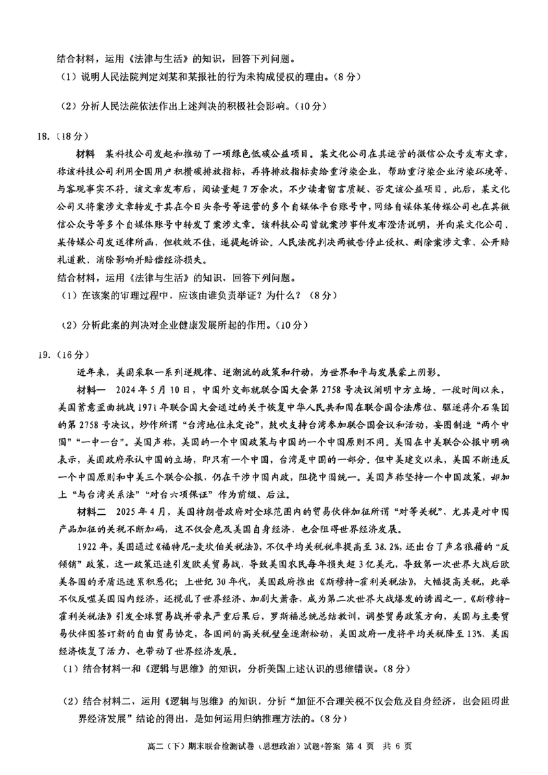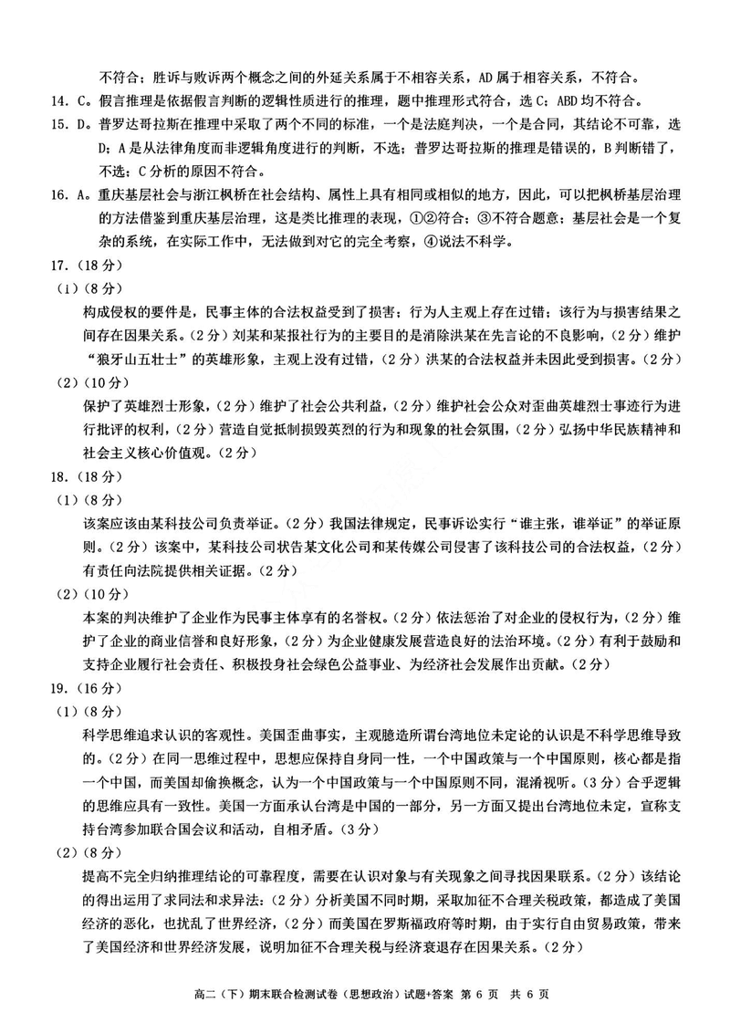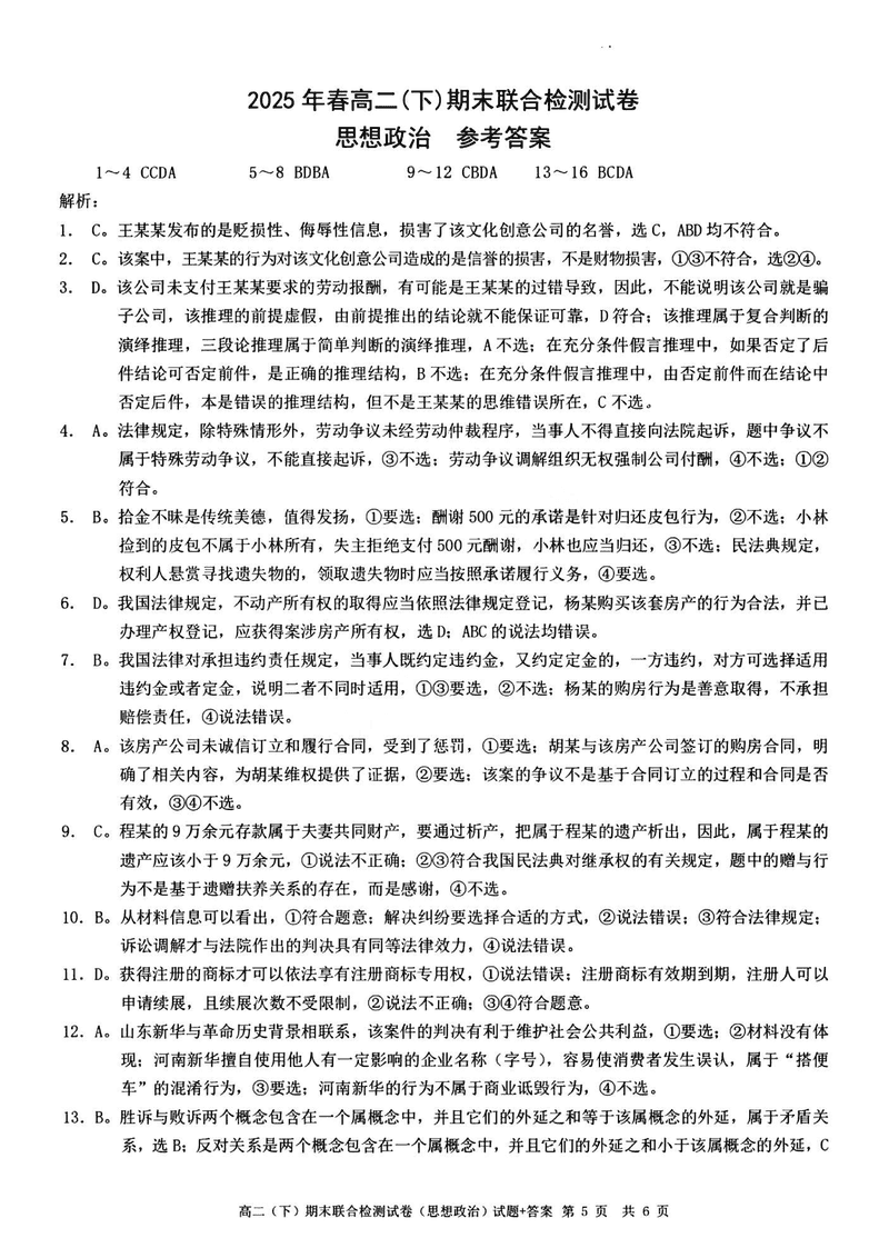 重庆康德教育2025年高二下期末联合检测政治试题及答案 时间:2025-07-10 重庆 高中政治 重庆康德教育2025年高二下期末联合检测政治考试已于近日开考,为方便考生考后及时查看考试情况,查漏补缺、弥补不足,本文整理了试题答案解析相关信息! 政治试题及答案解析